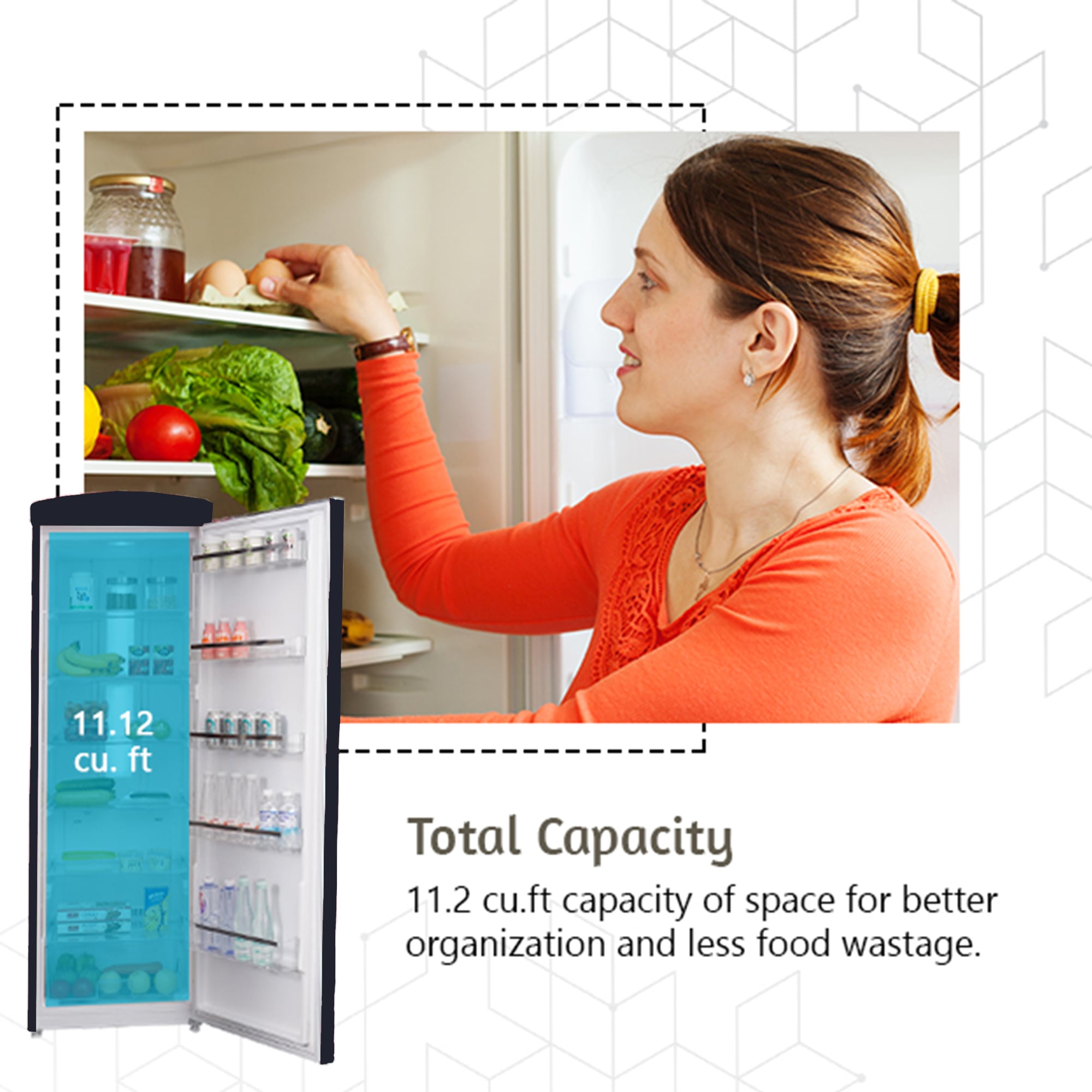 Looking to make a retro bold statement in your home? Well, look no further. This 50’s style full-size refrigerator is a beauty that'll never go out of style. Modern in energy and space efficiency but wrapped in Classic retro style, this refrigerator is a true blend of midcentury cool design with modern innovation. Not only does this one-door retro refrigerator offer generous storage at 11.12 Cu. ft. capacity. But, with 5 bottle-friendly door racks, 5 glass shelves plus a bottom shelf, it gives you the option to organize your food items as you wish. Featuring interior light, easy to reach adjustable controls, and rust proof handle, this gorgeous slimline fridge adds character to any space in a way that a normal refrigerator just doesn't