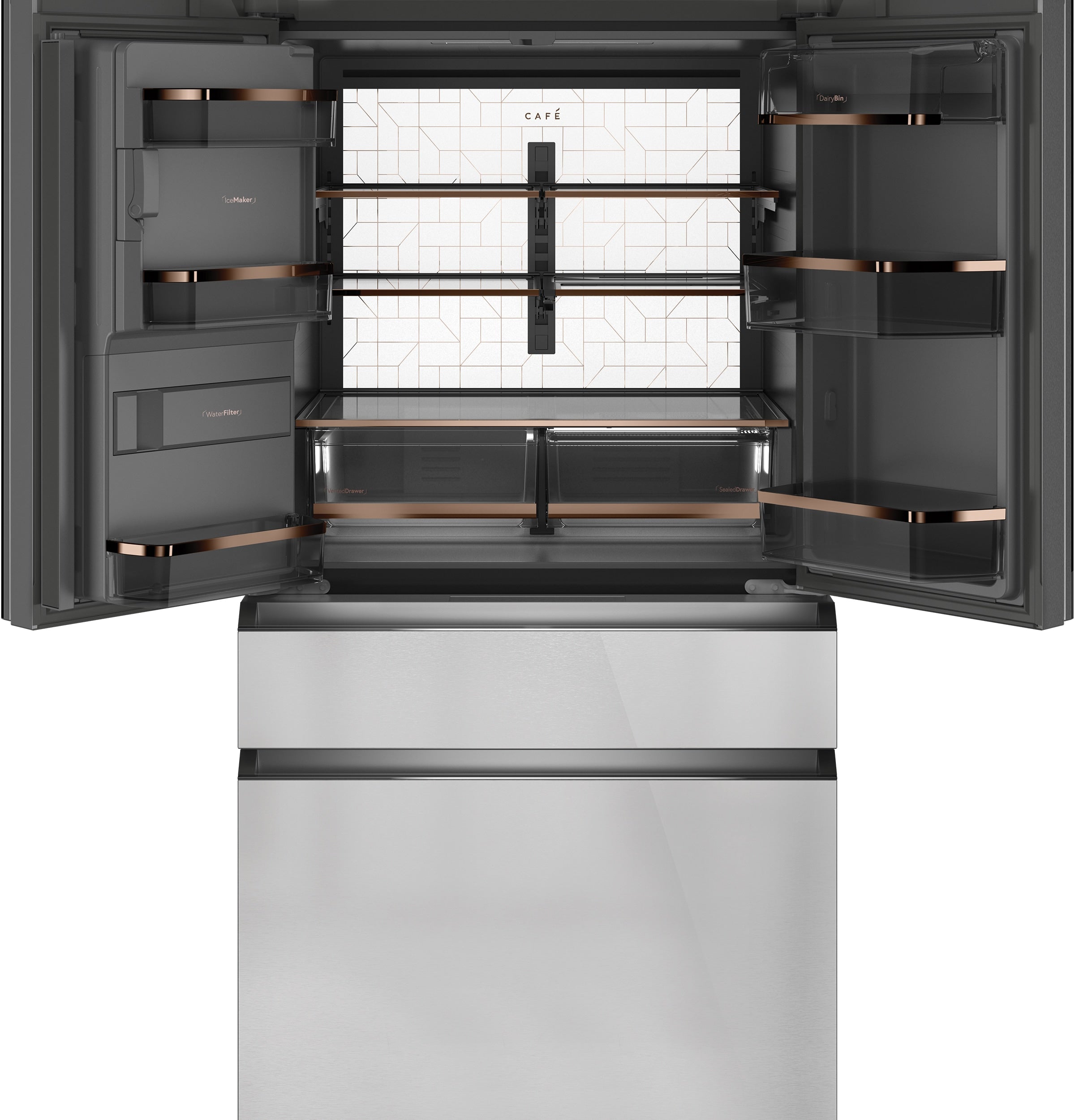 Cafe Counter-Depth 22.3-cu ft 4 -Door Smart Compatible French Door Refrigerator with Ice Maker with Water and Ice Dispenser ( Platinum Glass ) ENERGY STAR Certified