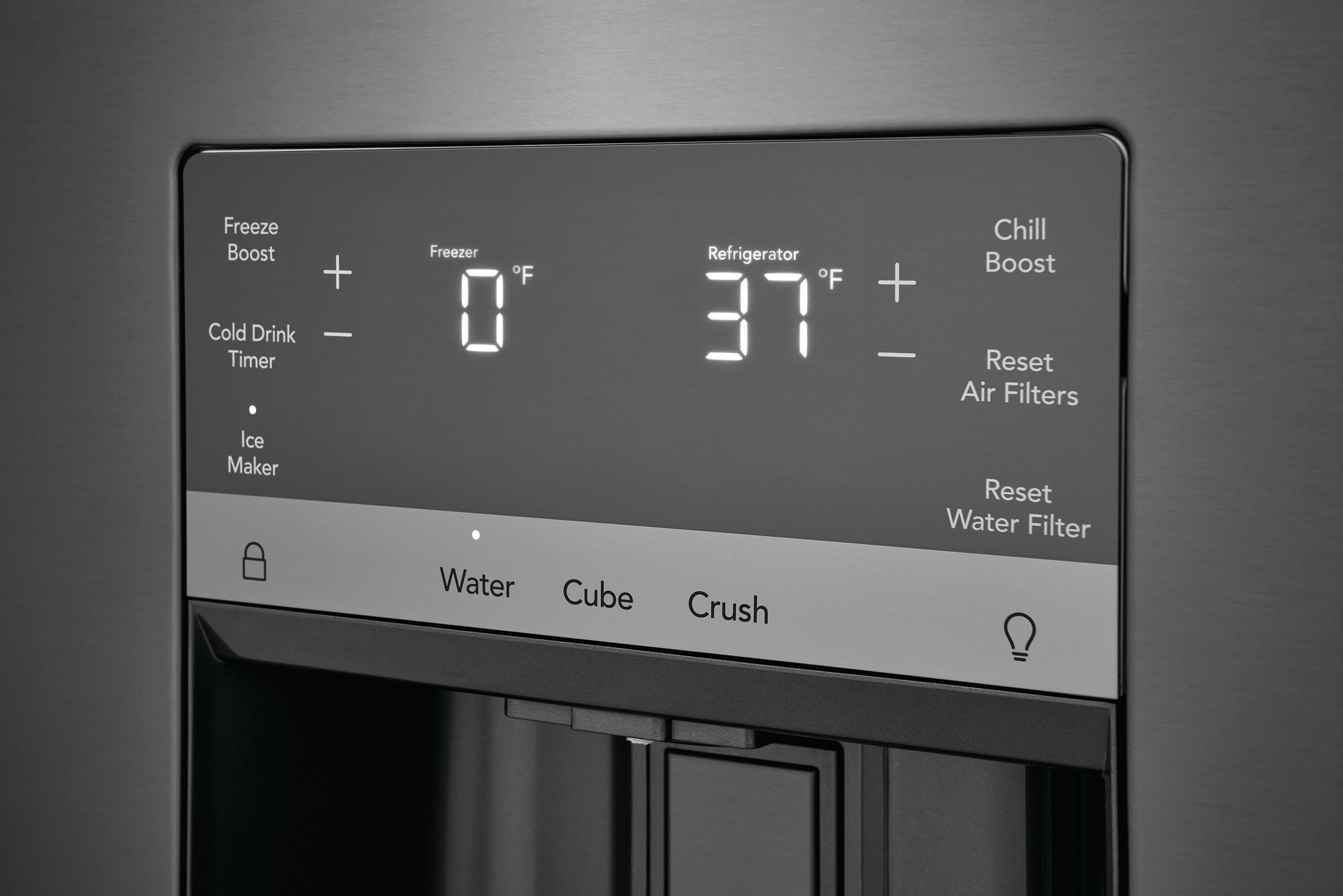 • Frigidaire Gallery Standard-Depth 27.8-cu ft 3 -Door French Door Refrigerator with Dual Ice Maker with Water and Ice Dispenser ( Fingerprint Resistant Black Stainless Steel ) ENERGY STAR Certified