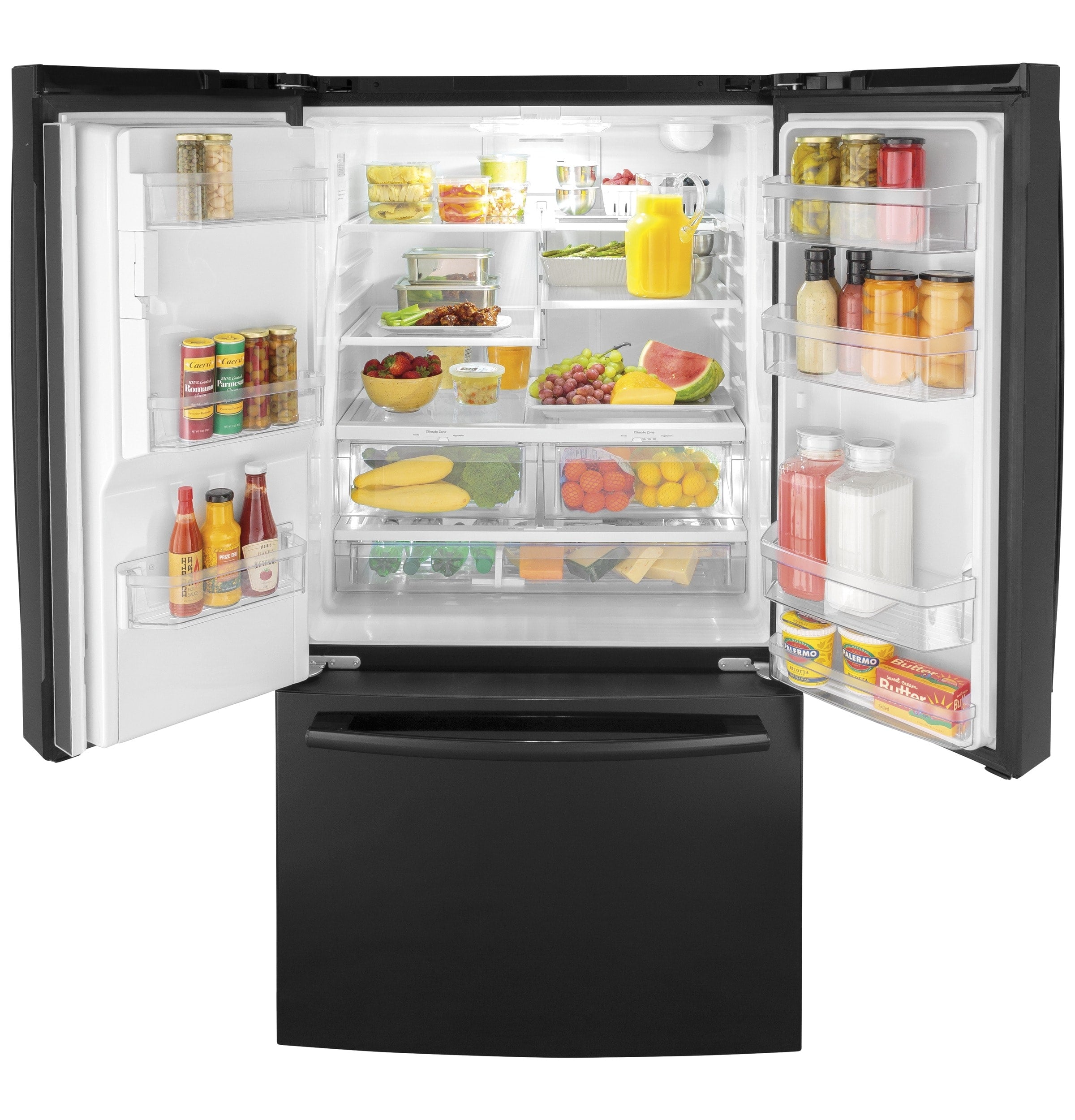25.6 cu ft capacity - easily store large or bulk food items with three full-width shelves