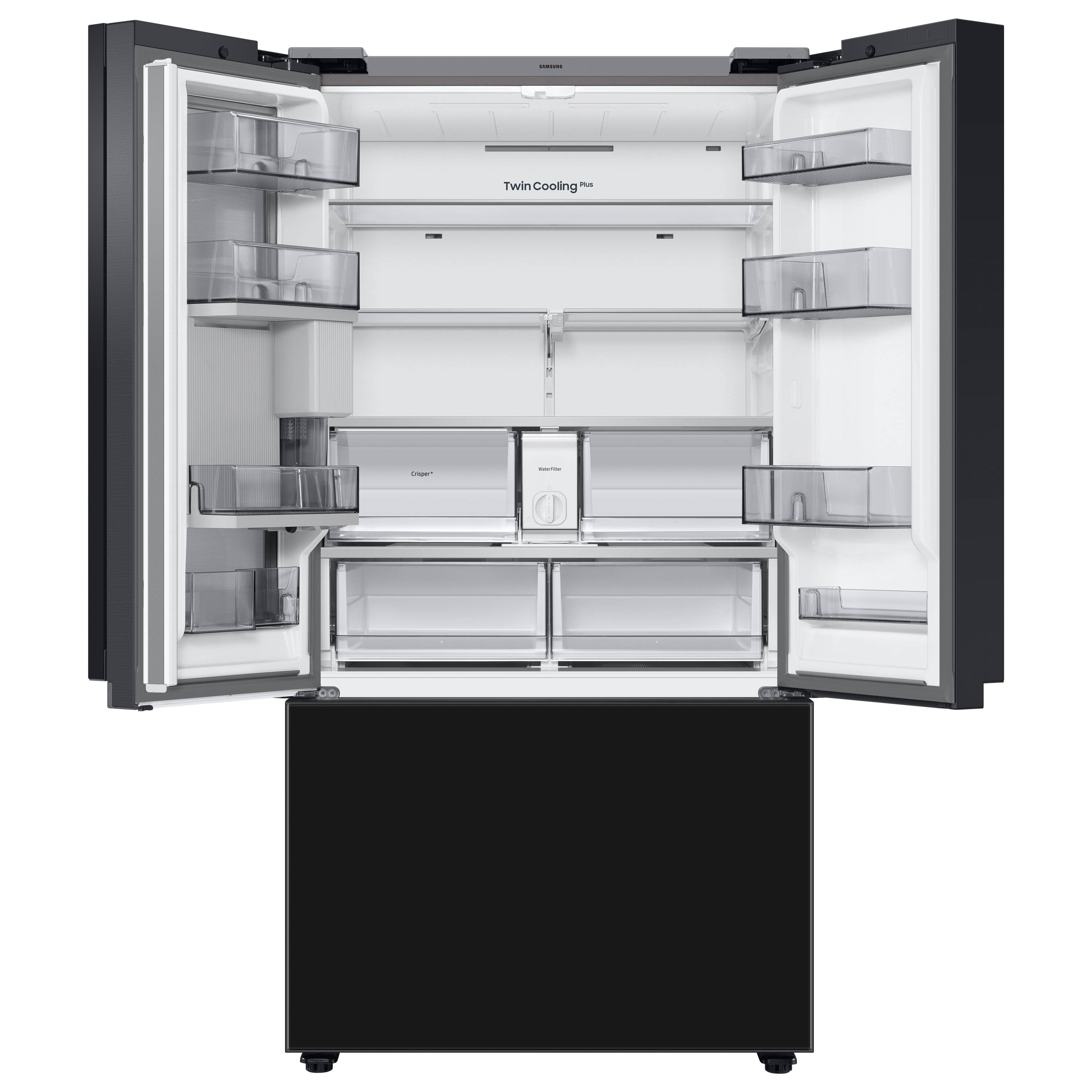 Customize the design of your 3-Door French Door Standard-Depth Refrigerator with customizable door panels. Choose from twelve colors to create a refrigerator that fits your personal style. Complete set includes 1 top panel and 1 bottom panel with this refrigerator (Top Right Smart Hub screen panel installed as shown).