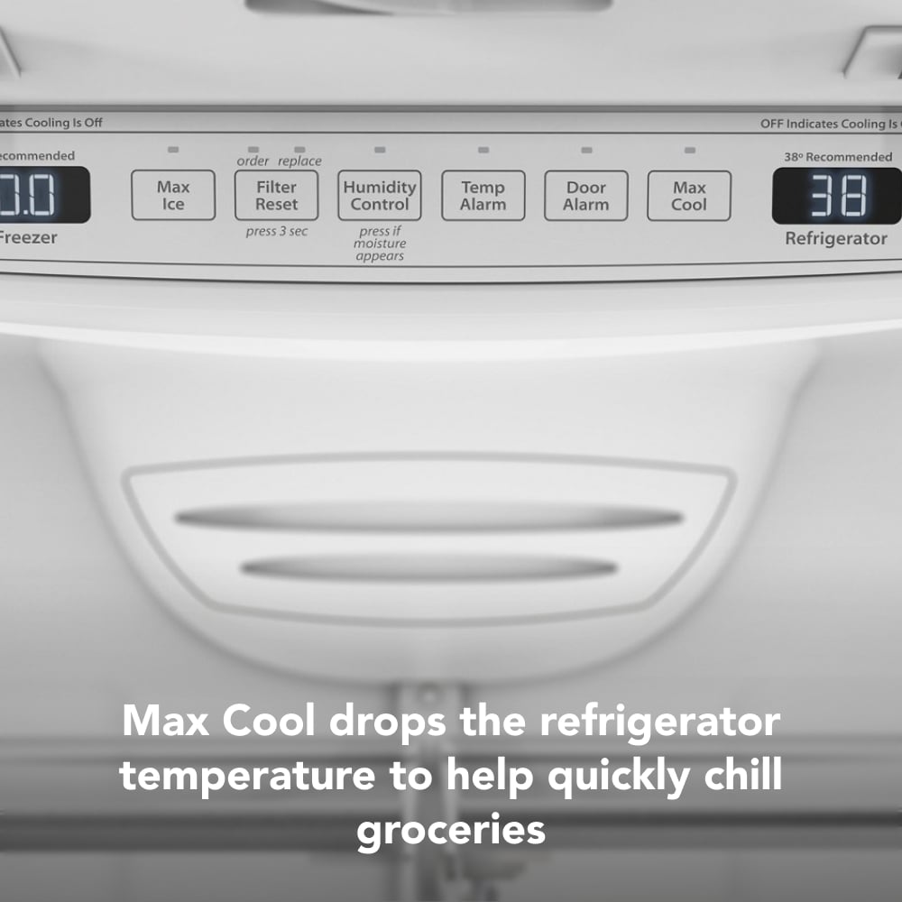 • The Max Cool Option drops the refrigerator temperature to help quickly chill groceries