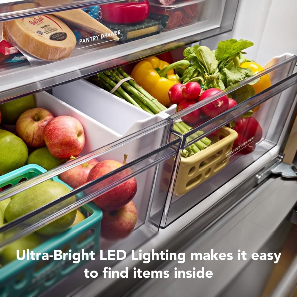 • Ultra-Bright LED lighting makes it easy to find items inside