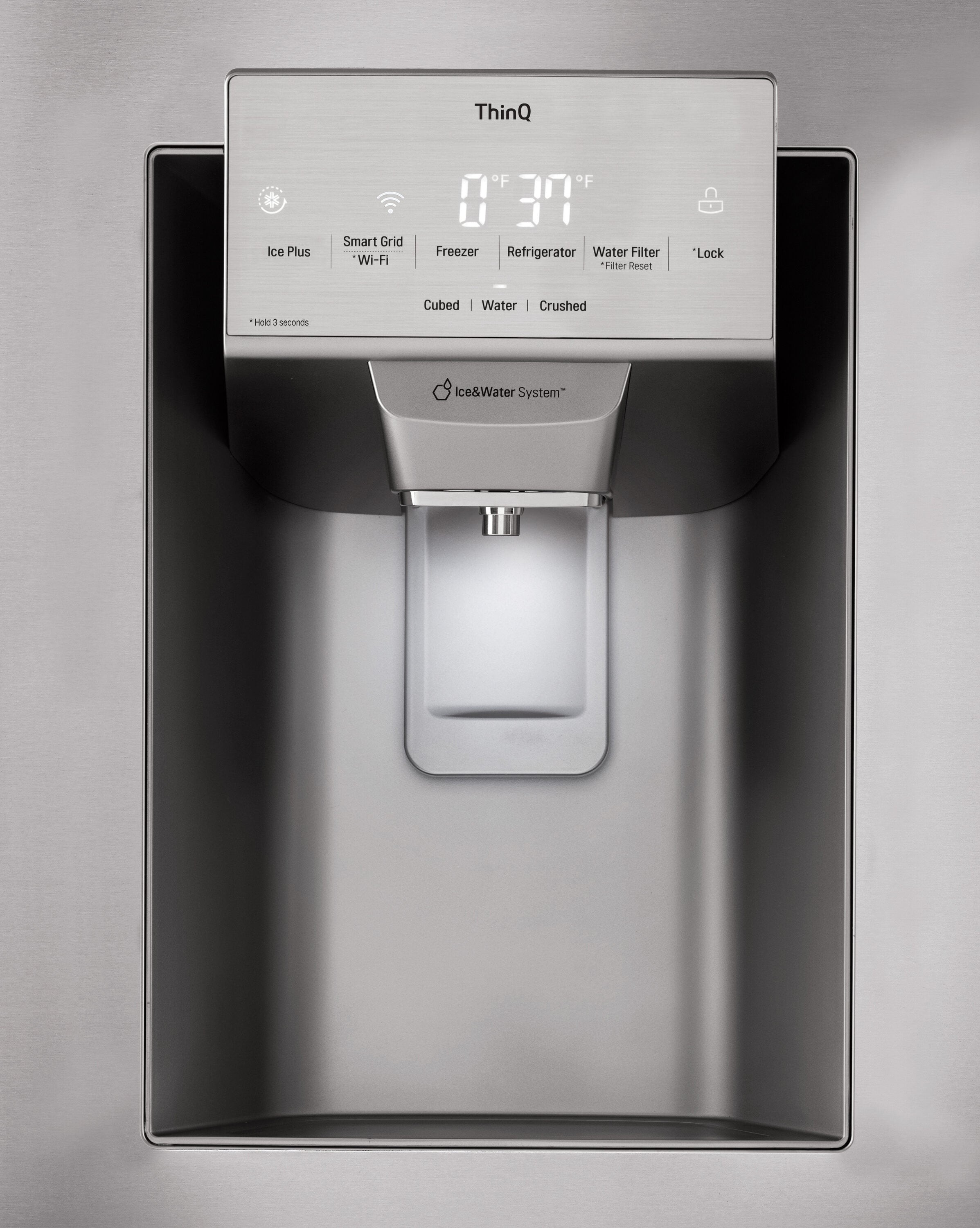 Finally, an ice and water dispenser that can accommodate just about any container.