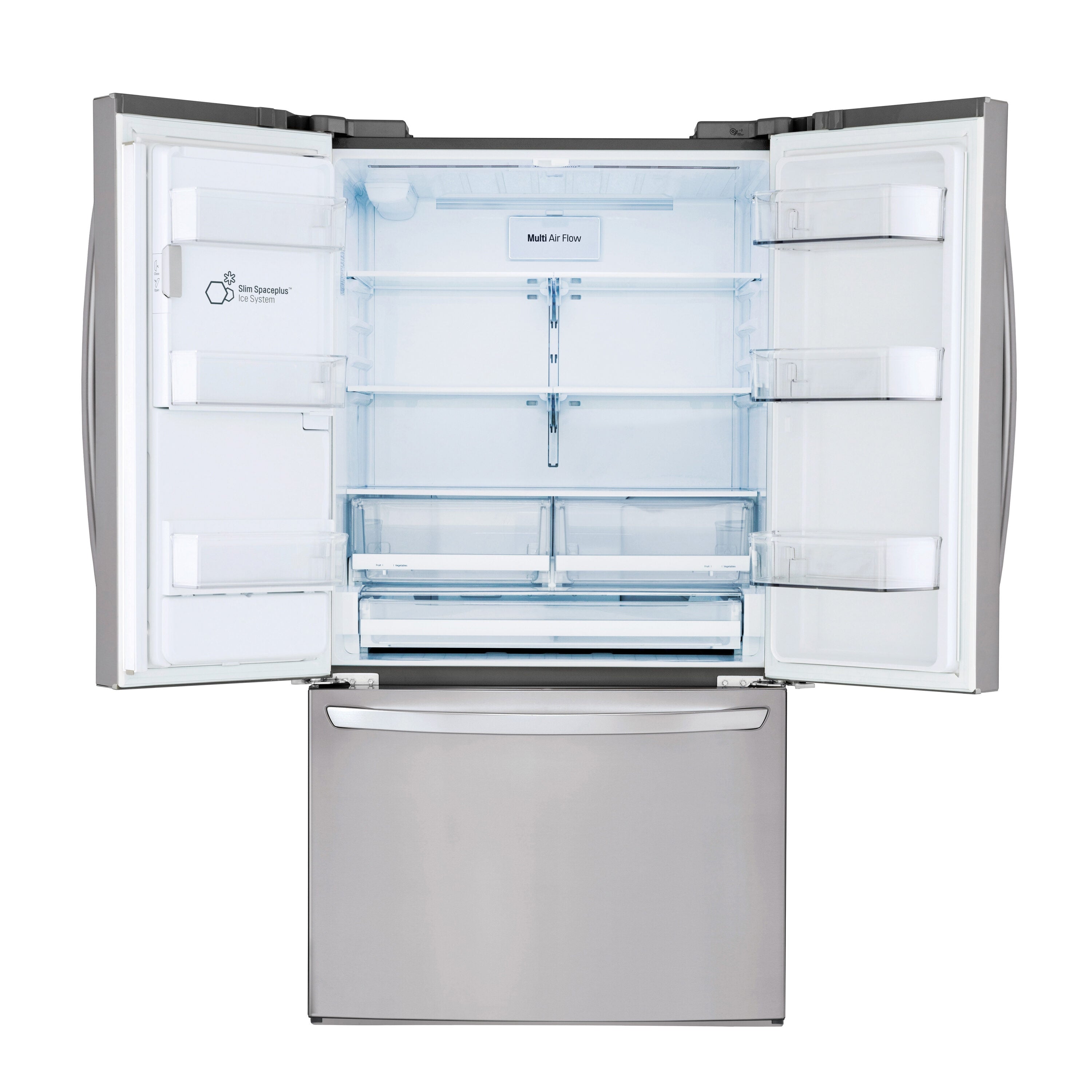 The LG Slim SpacePlus Ice System provides the most shelf space.