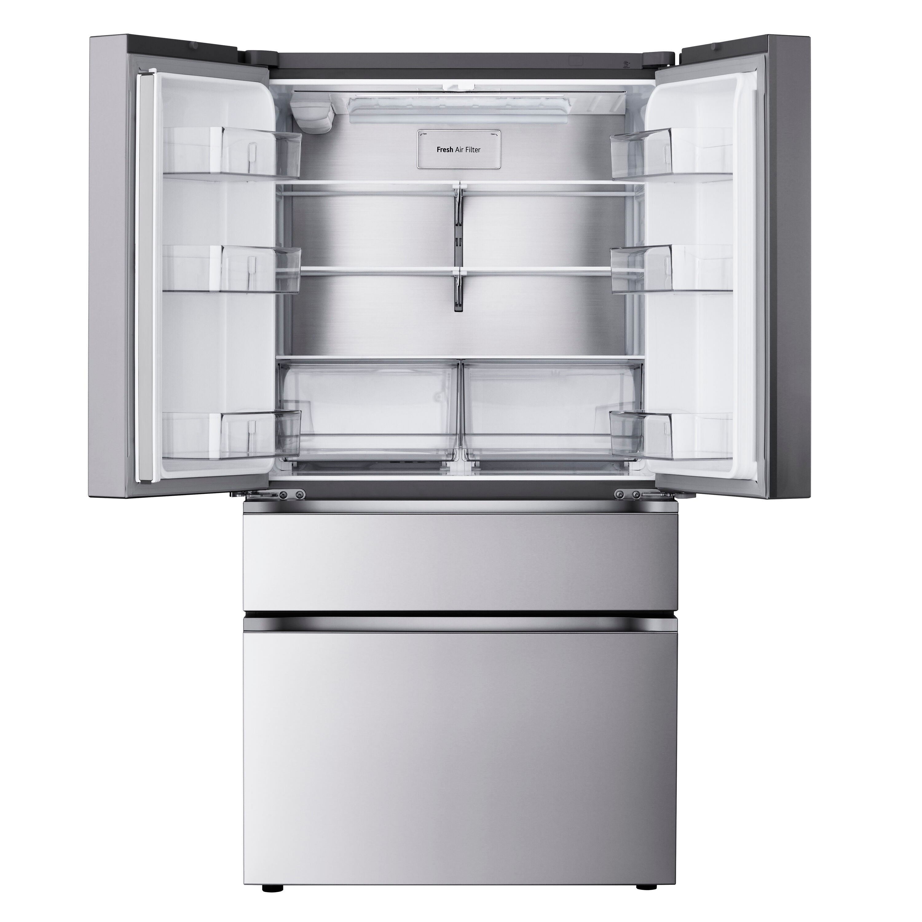 This 4-door Standard-Depth MAX™ refrigerator doesn’t just give you space—it brings a new level of organization, flexibility and style to your kitchen. Sleek flat-panel doors with discreet pocket handles add a premium feel. A slam-resistant door design allows the refrigerator doors to close softly and quietly. French doors offer easy access to fresh foods, while double drawers below means no more rummaging through stacks of frozen items. The versatile Full-Convert Drawer™ converts from fridge to freezer with just a touch, with 5 temperature settings for optimal storage for a range of fresh or frozen items.