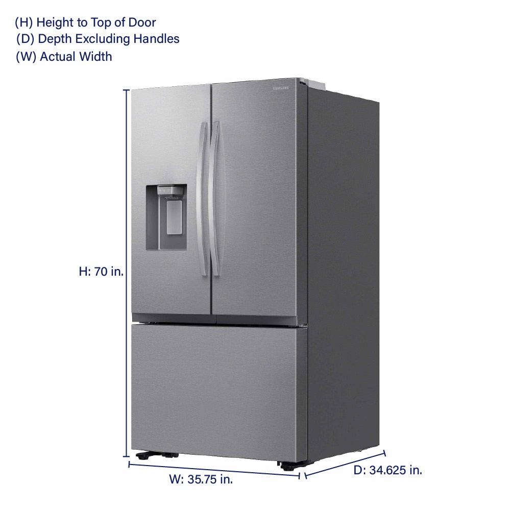 • Samsung Standard-Depth Mega Capacity 30.5-cu ft 3 -Door Smart Compatible French Door Refrigerator Triple with Water and Ice Dispenser ( Fingerprint Resistant Stainless Steel ) ENERGY STAR Certified