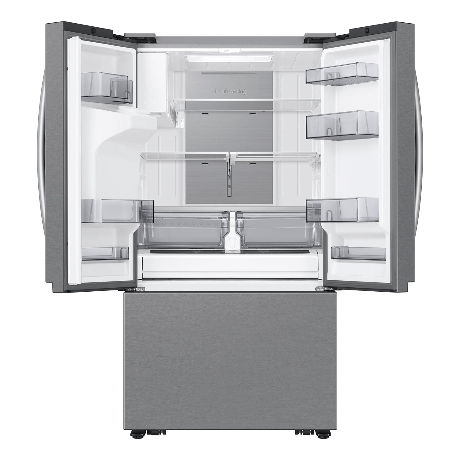 • Metal Cooling: Locks in cold and seals in freshness; the stainless steel paneling helps maintain consistent temperature throughout the refrigerator.