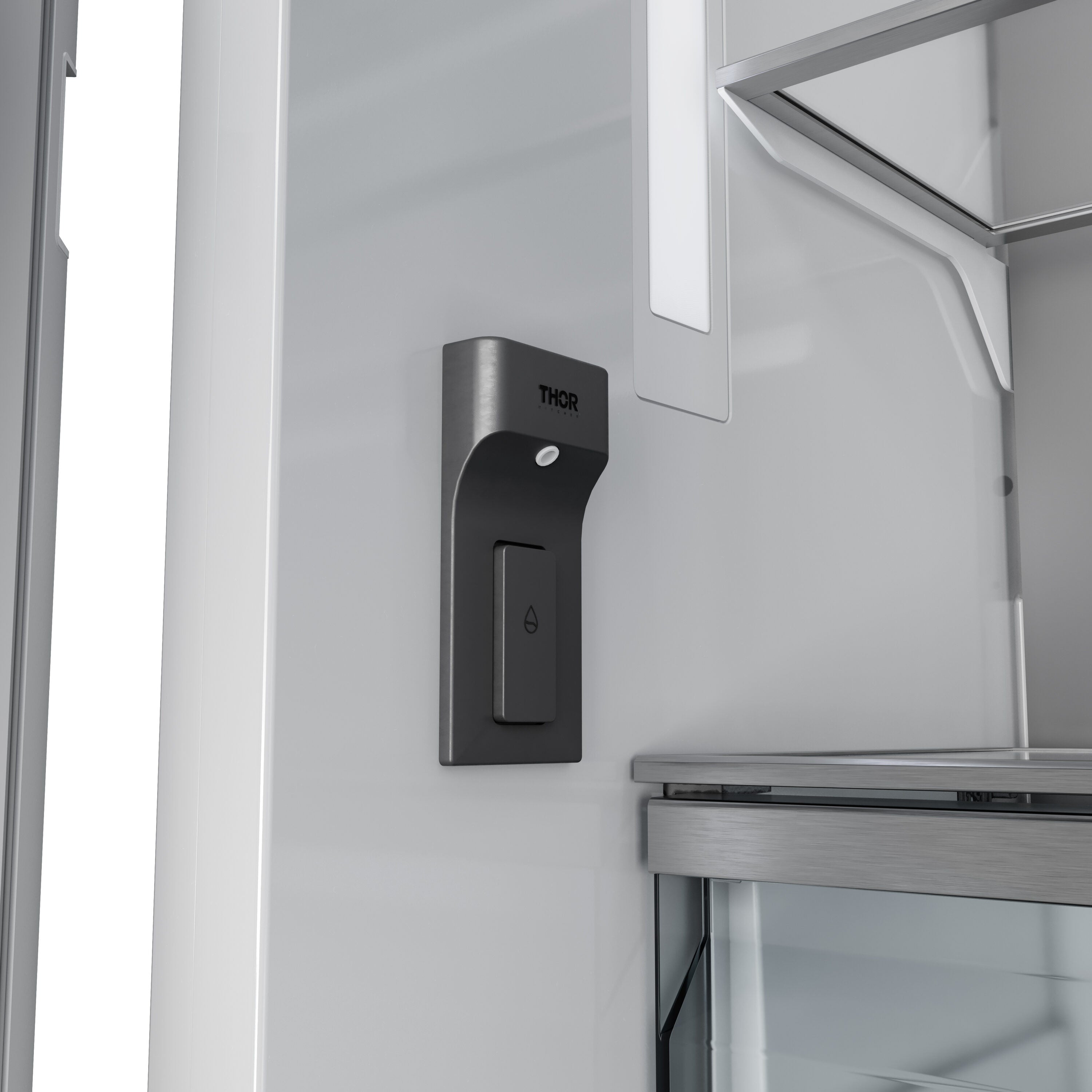 Interior Water Dispenser: Provides easy access to clean and fresh water, especially convenient for units equipped with an ice maker.