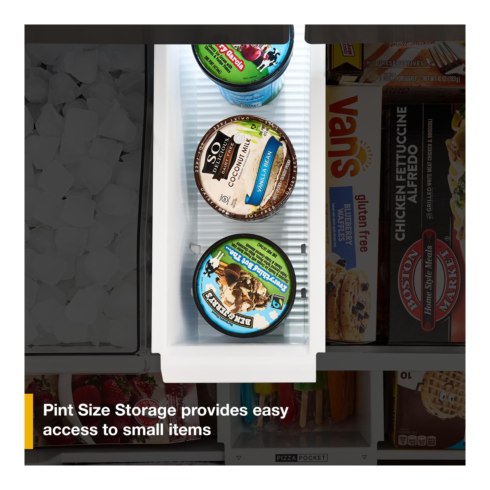 Large Capacity In-Door Ice Storage holds up to 4 lbs of ice