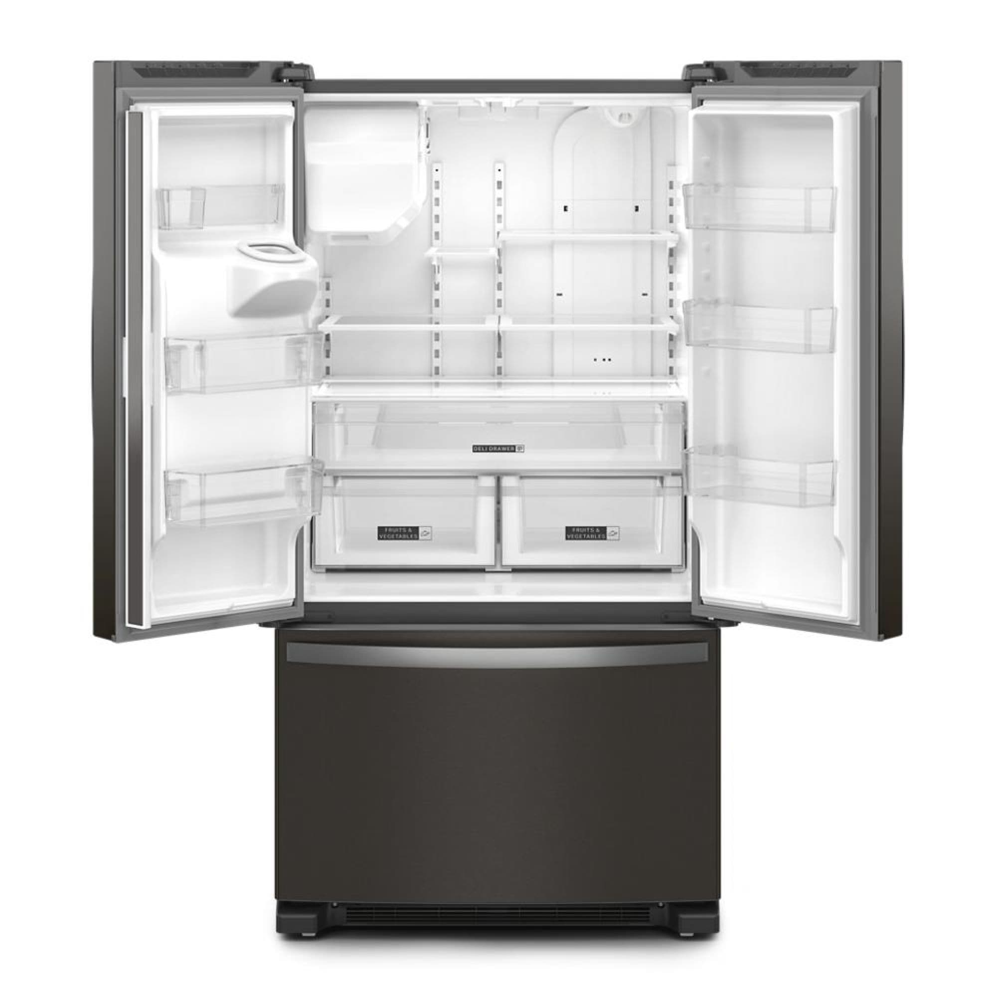 This French Door refrigerator with In-Door-Ice® and Water gives you the storage you need with the flexibility you want. With features like an Elevated Deli Drawer, spend less time looking and more time enjoying your deli essentials. Need ice? No French Door Bottom Mount Refrigerator in-door ice maker holds more ice. Get instant access to freshly filtered water and ice without opening the door. Adjustable Shelves and Gallon Door Bins easily move up or down to help make room for tall items while keeping everyday items in sight.