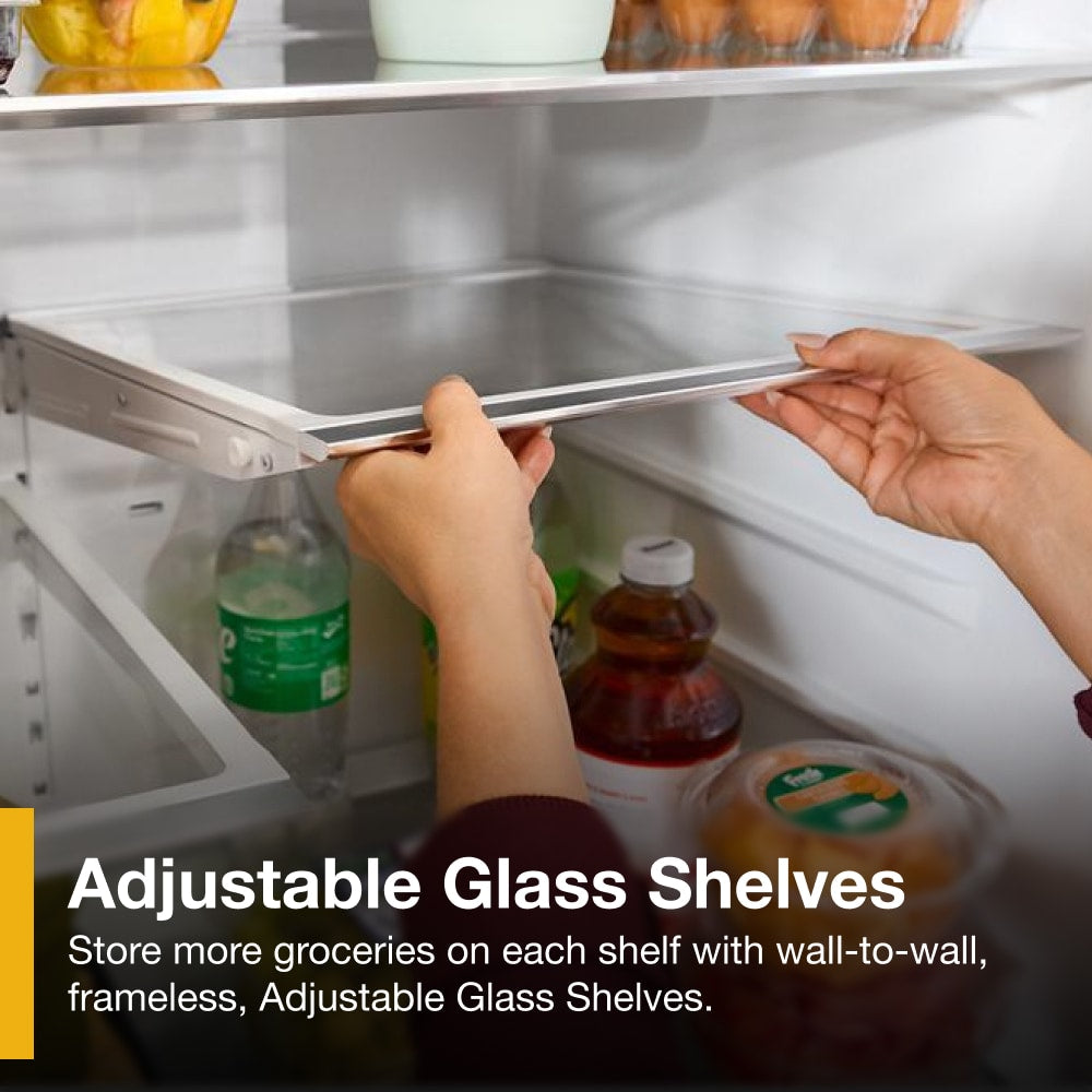 Store more groceries with frameless, full and half Adjustable Glass Shelves