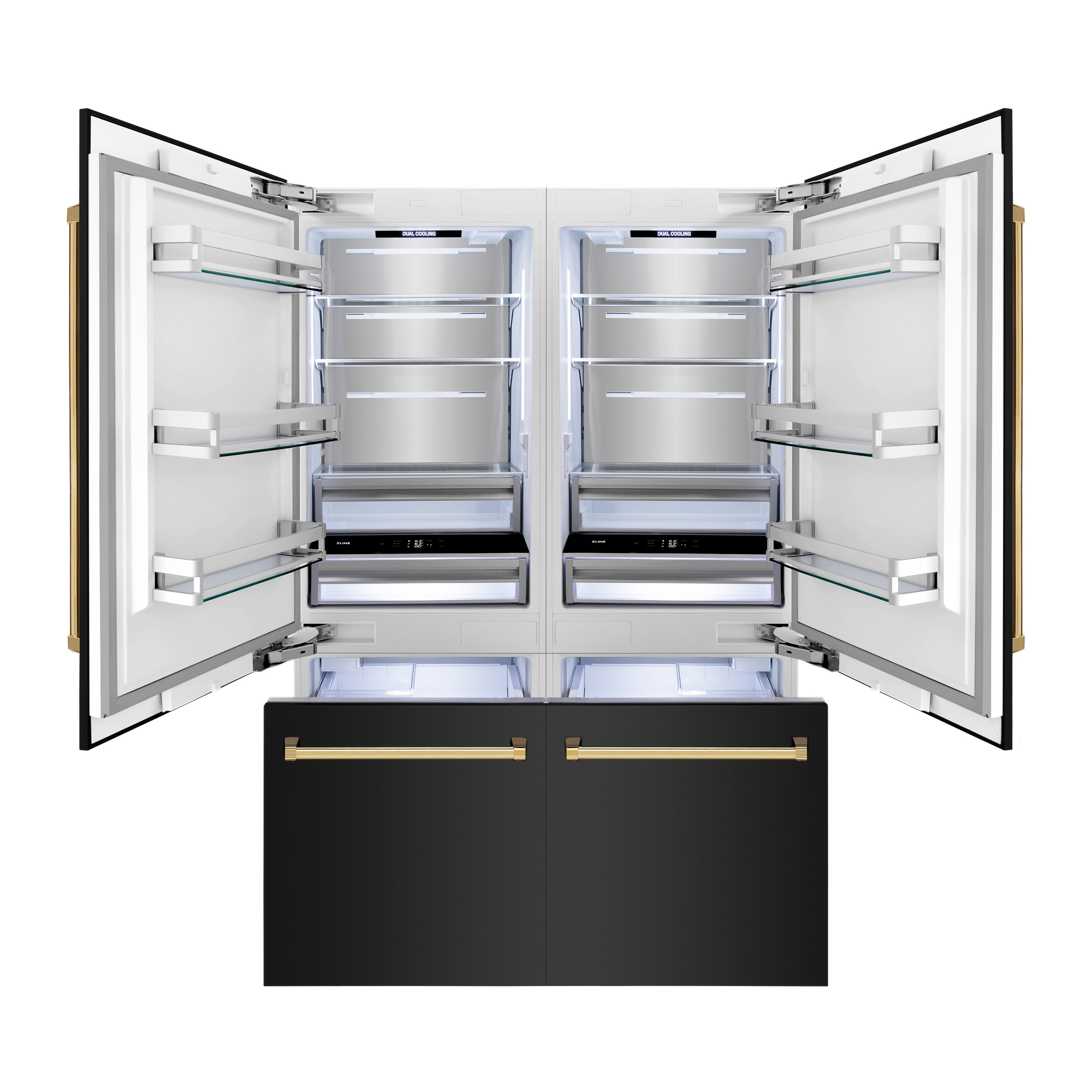 ZLINE KITCHEN & BATH Counter-Depth 32.2-cu ft 4 -Door Built-In French Door Refrigerator with Ice Maker with Water Dispenser ( Black Stainless Steel with Polished Gold accent Handles ) ENERGY STAR Certified