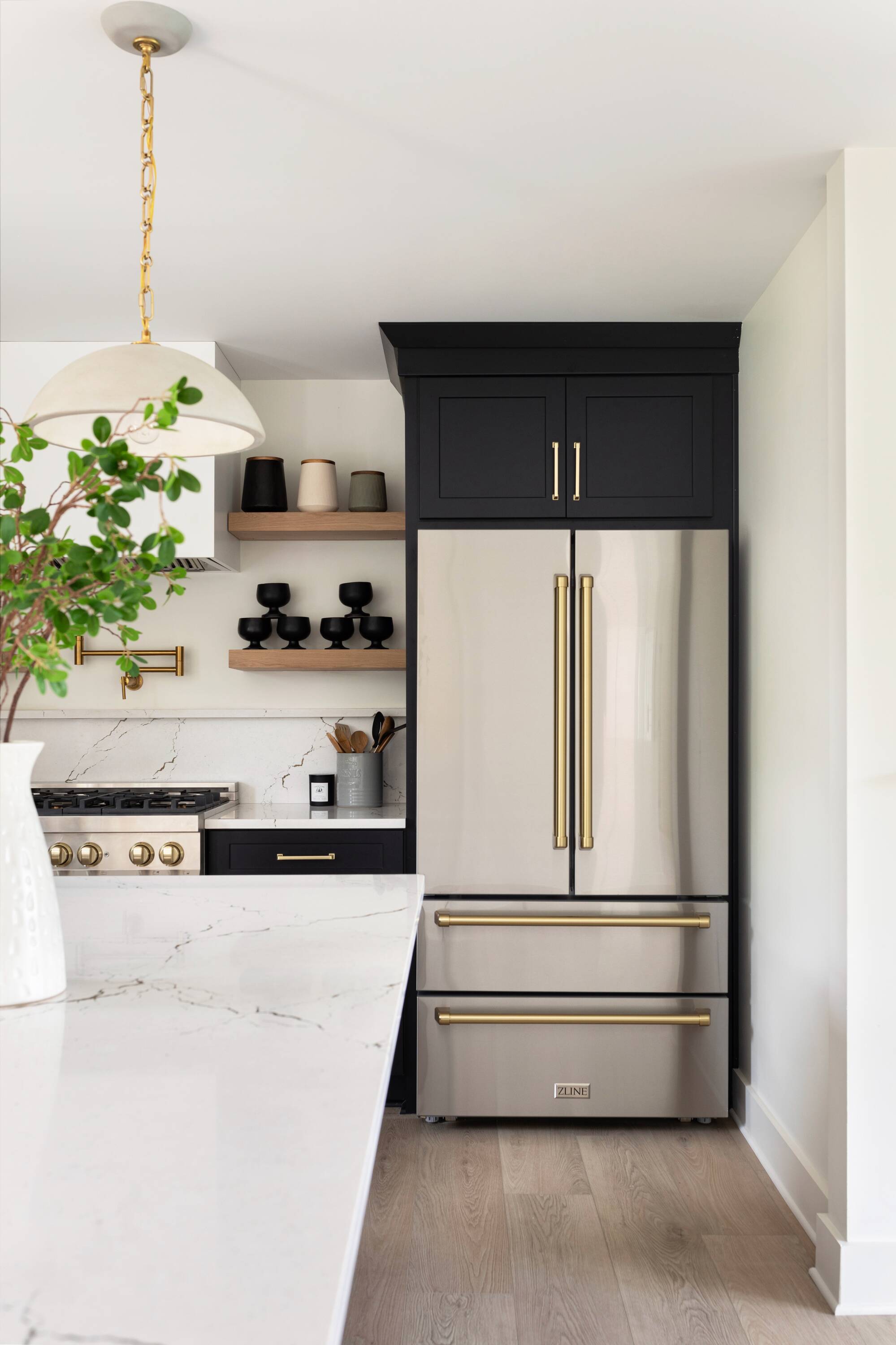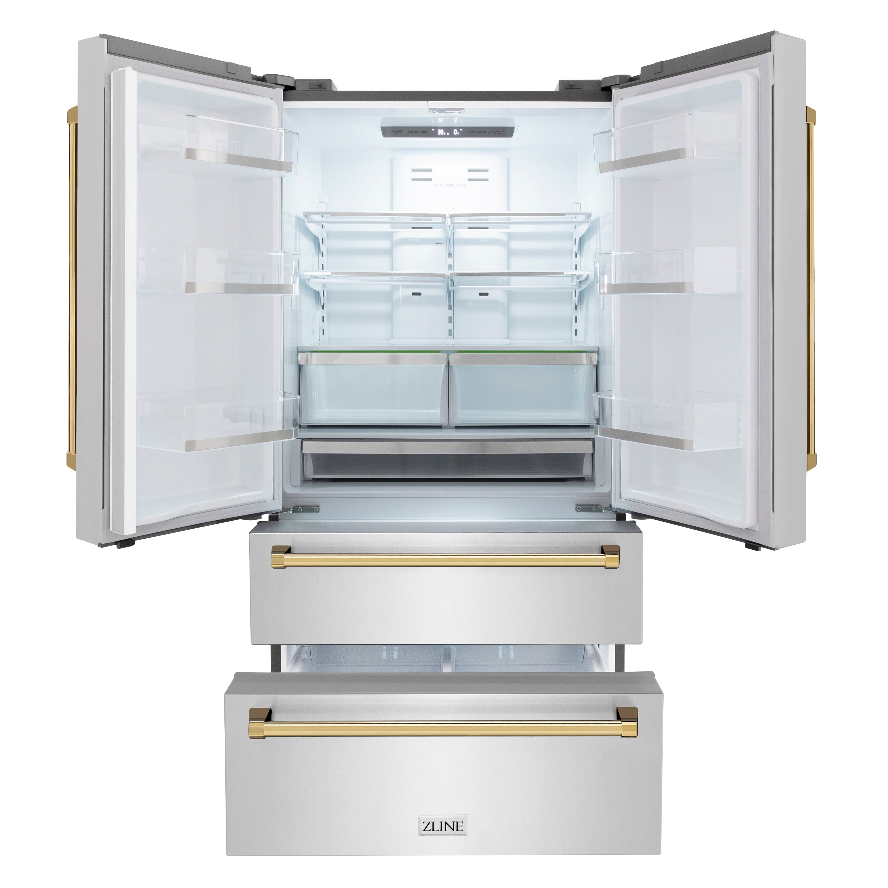 Autograph Edition Counter-Depth Design - Create a timeless look in your kitchen with a counter-depth refrigerator featuring ZLINE’s luxurious Autograph Edition Polished Gold traditional handles, a stunning fingerprint-resistant stainless steel exterior finish, and a beautiful Bright White interior that delivers superior durability