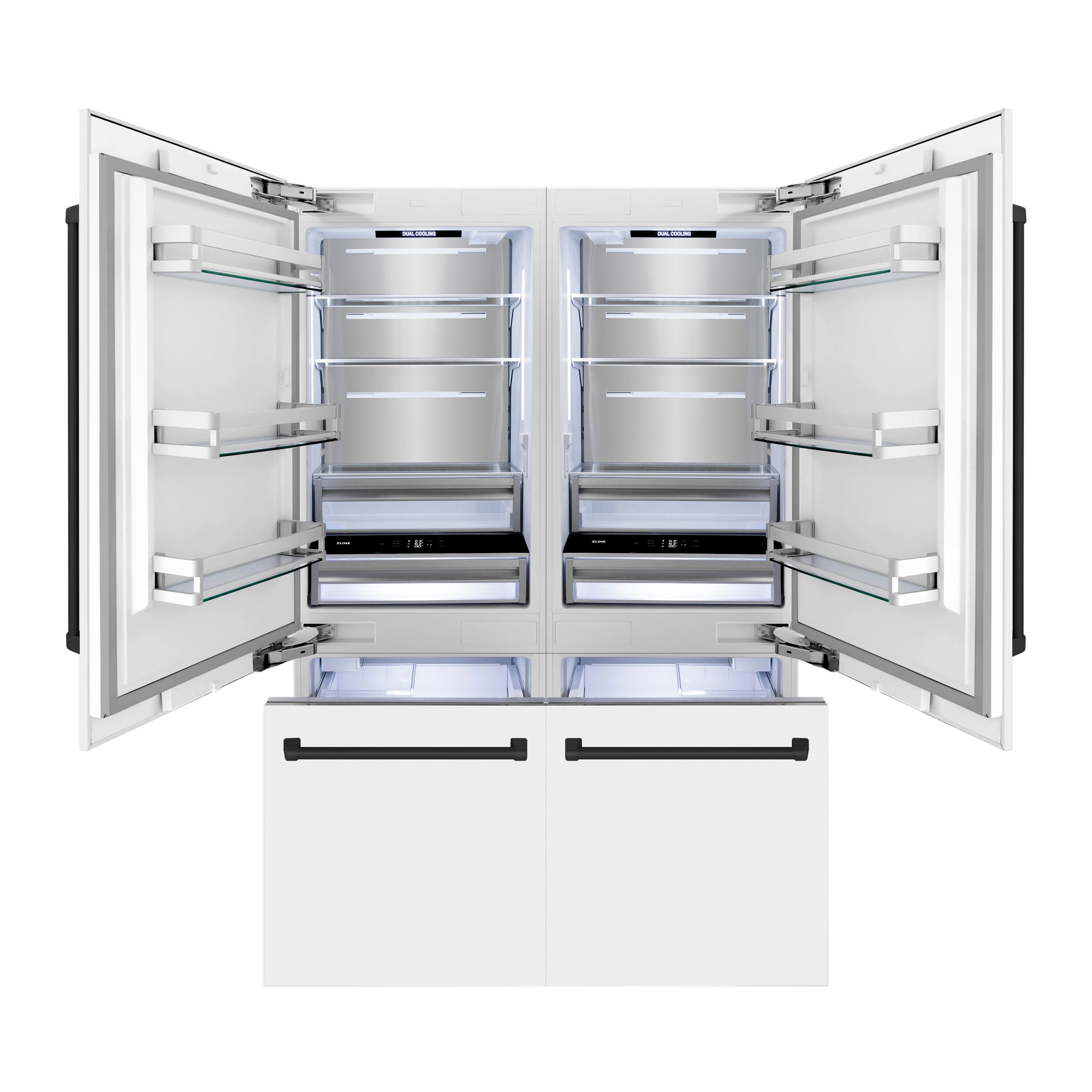 ZLINE KITCHEN & BATH Counter-Depth 32.2-cu ft 4 -Door Built-In French Door Refrigerator with Ice Maker with Water Dispenser ( Stainless Steel with White Matte Panels and Matte Black accent Handles ) ENERGY STAR Certified