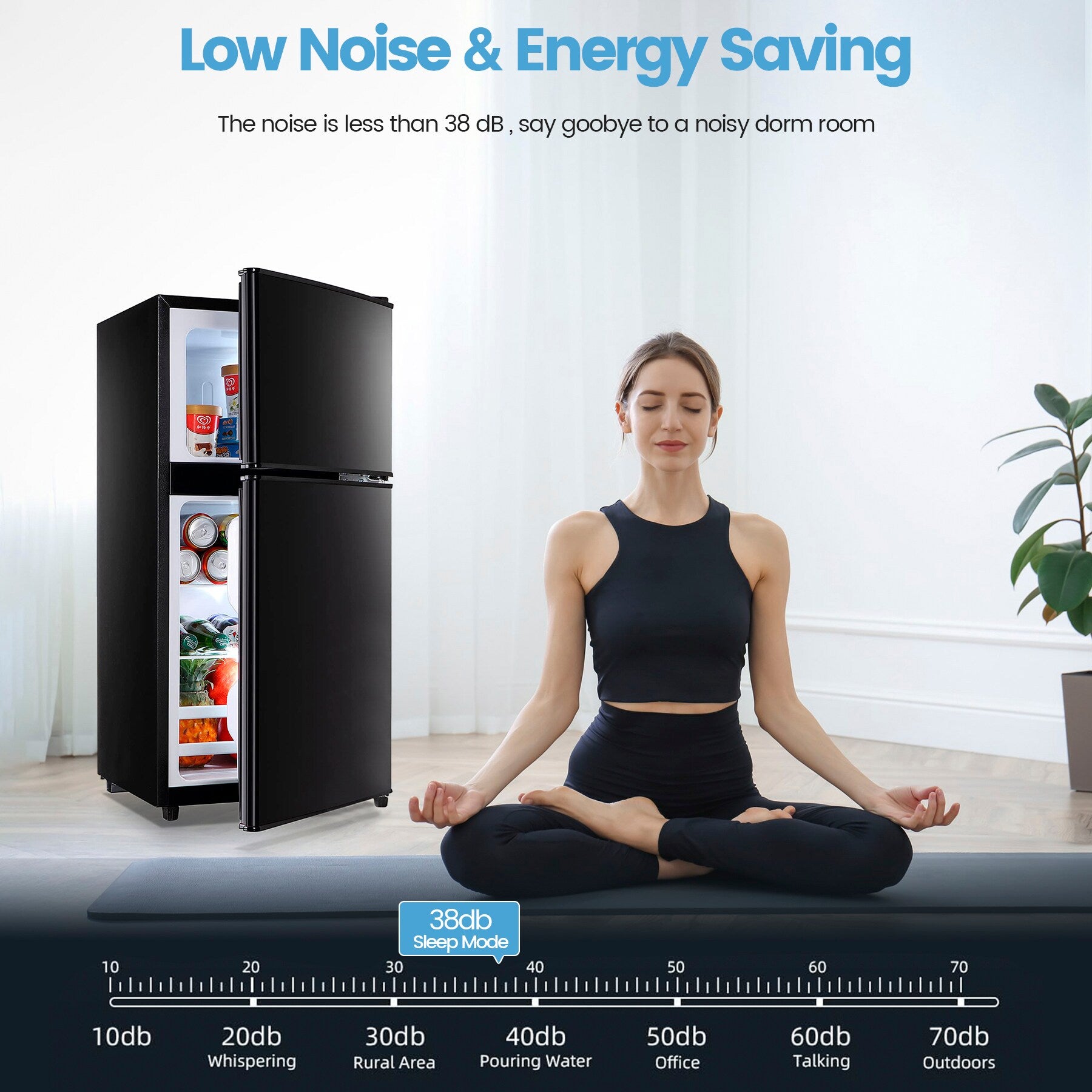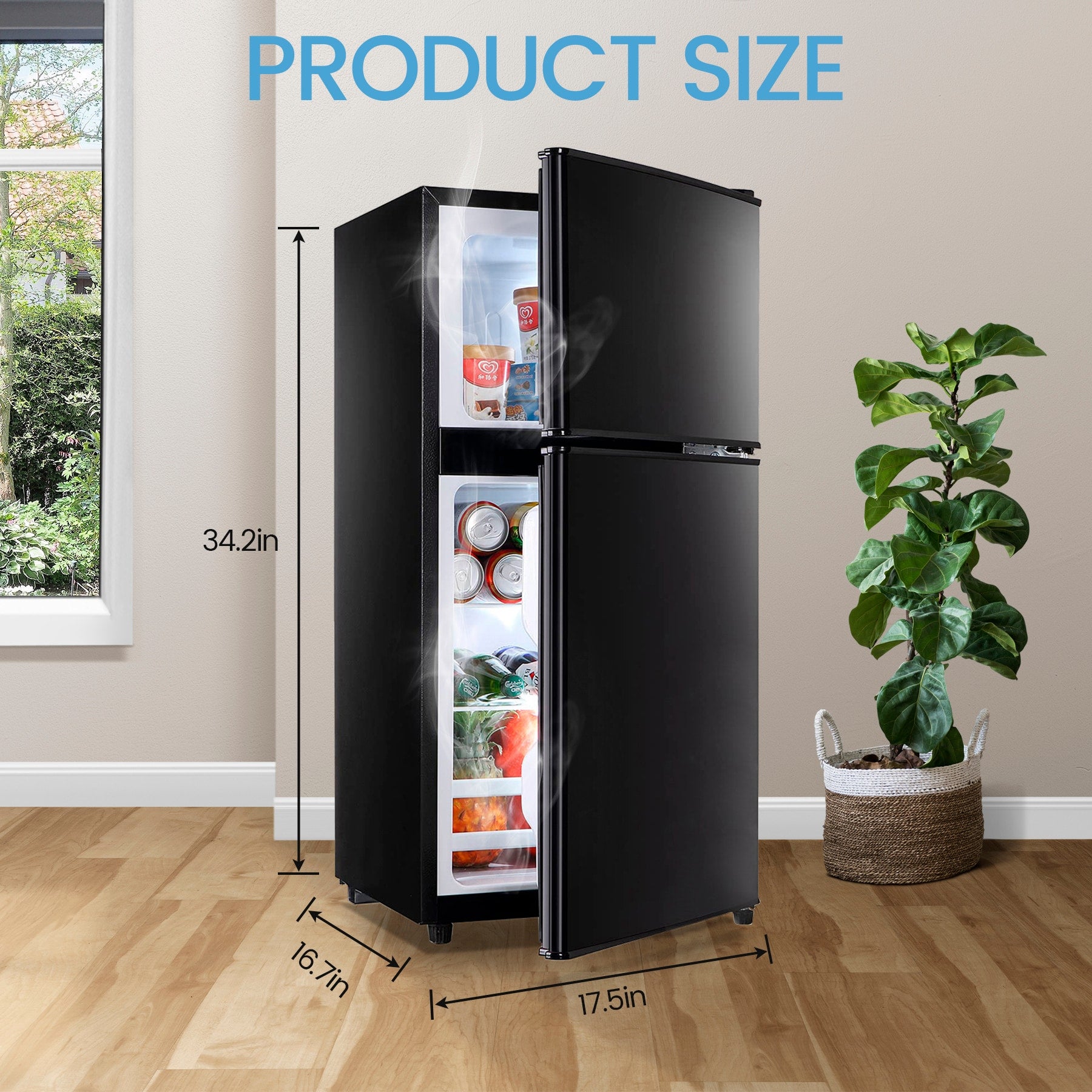 Top freezer design: large capacity of 3.5 cu ft is divided into refrigerator and freezer areas, the fridge has large 2.3 cu ft fresh food capacity for keeping foods organized and 1.2 cu ft freezer capacity for storing frozen foods, which are more spacious than ordinary mini refrigerators and can keep food fresh or frozen.