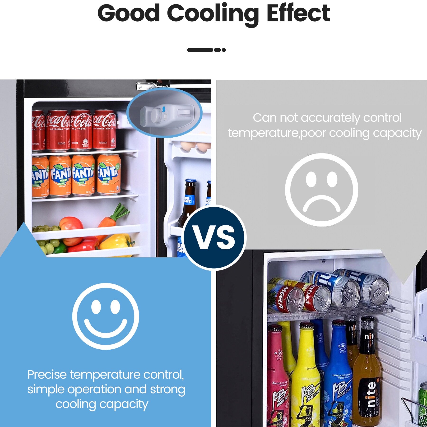 Adjustable Temperature Control: Adjustable Temperature Control: Our refrigerator can be adjusted to 5 to 10℃ in the refrigerator compartment / 0 to -18℃ in the freezer compartment; Turn the thermostatic knob, there is no fixed gear, the knob is steplessly adjusted; Meet the different requirements of different foods for temperature.