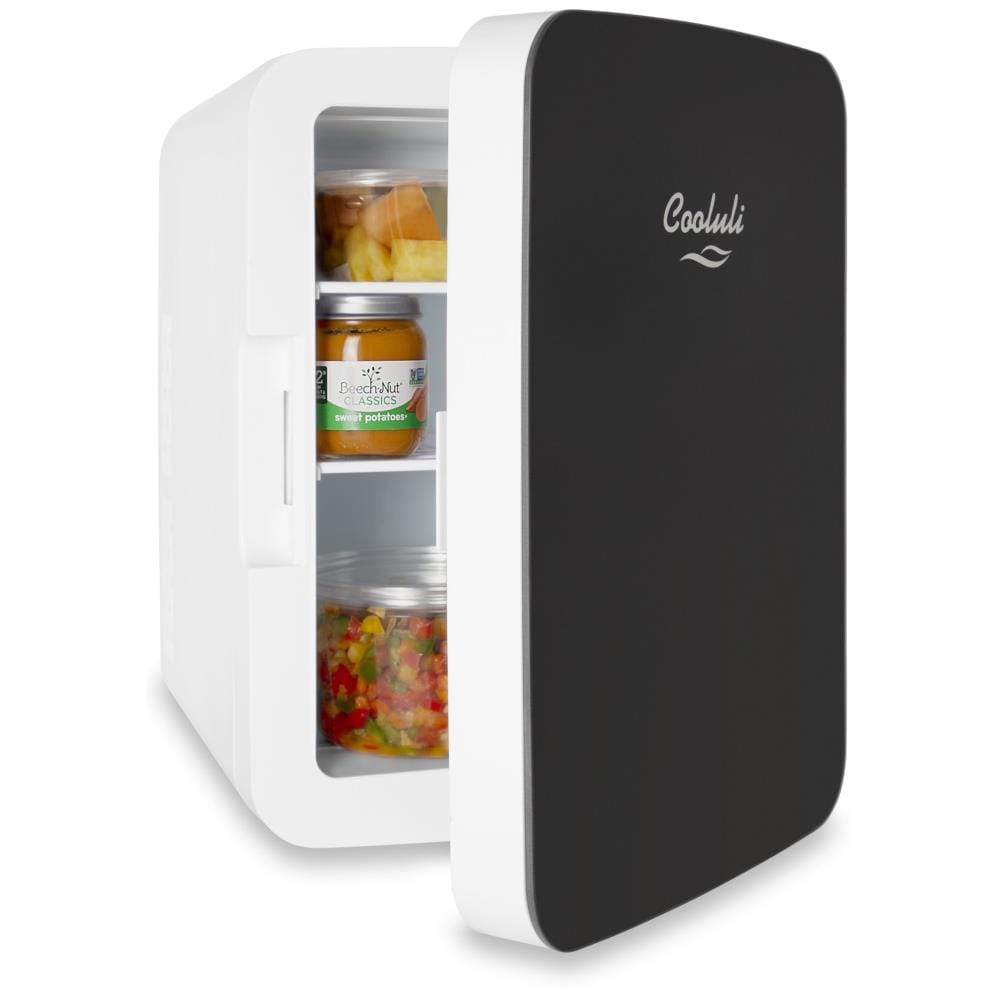 The Infinity-10L Cooler/Warmer Mini Fridge boasts efficiency and durability in a stylish compact unit. The all-purpose, thermoelectric Infinity features upgraded foam for better insulation and goes from cooling to warming with one switch. The Infinity is perfect for storing food, snacks, drinks, breast milk, insulin, skincare, personal care and beauty products, and medications.\N\NIts compact design features a 10-liter capacity, tempered glass front, and the molded foldaway top handle makes transport a breeze. Fits up to twelve 12-oz. soda/beer/drink cans! Use it everywhere—the Infinity’s stylish construction matches any décor, making it the perfect addition to your home, countertop, business/office, dorm, hotel room, car/motor vehicle, or on your next road trip or tailgate!\N\NExclusive EcoMax Technology features Cooluli’s unique cooling system that helps prevent frost; it’s also powerful, quiet, and cost-effective—when maximum efficiency is reached, the Infinity goes into ECOmode—saving you money! 100% environmentally friendly, it uses no refrigerants or Freon. It’s dual voltage and works anywhere in the world. This unit features a 1 Year Limited Warranty and Cooluli’s unparalleled customer service.