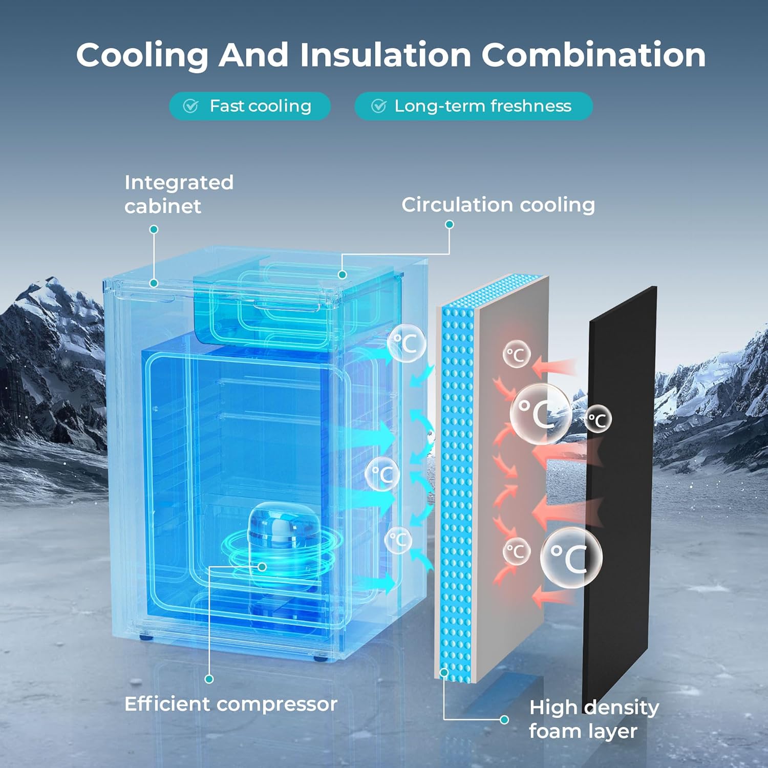 Single-Door Refrigerator, a perfect blend of style and functionality for your cooling needs. With a sleek black exterior, this compact refrigerator features a mechanical rotary knob with 7-settings for easy temperature adjustments, ensuring your food and beverages are always stored perfectly. It's lightweight and durable, making it an ideal choice for dorms, offices, or small apartments. Upgrade your cooling experience with the refrigerator-where practicality meets modern design.