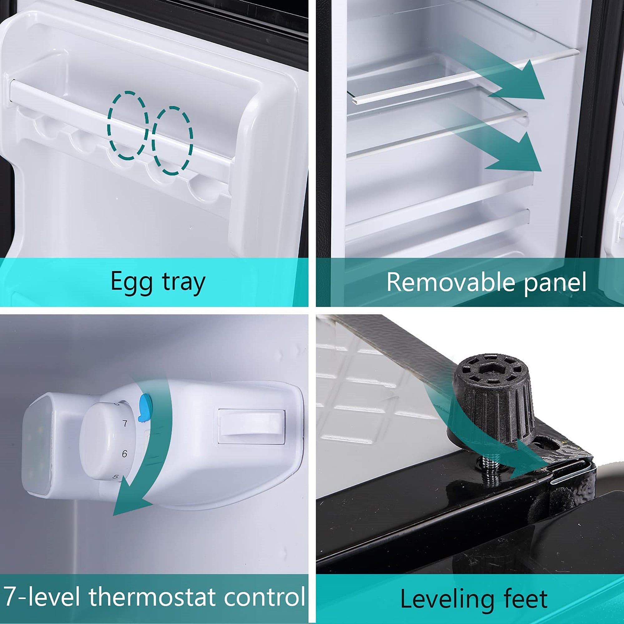 • Removable Glass Shelf: Equipped with two removable glass shelves, it can distinguish different kinds of food, Store your food or drinks flexibly, easy to take out and clean.