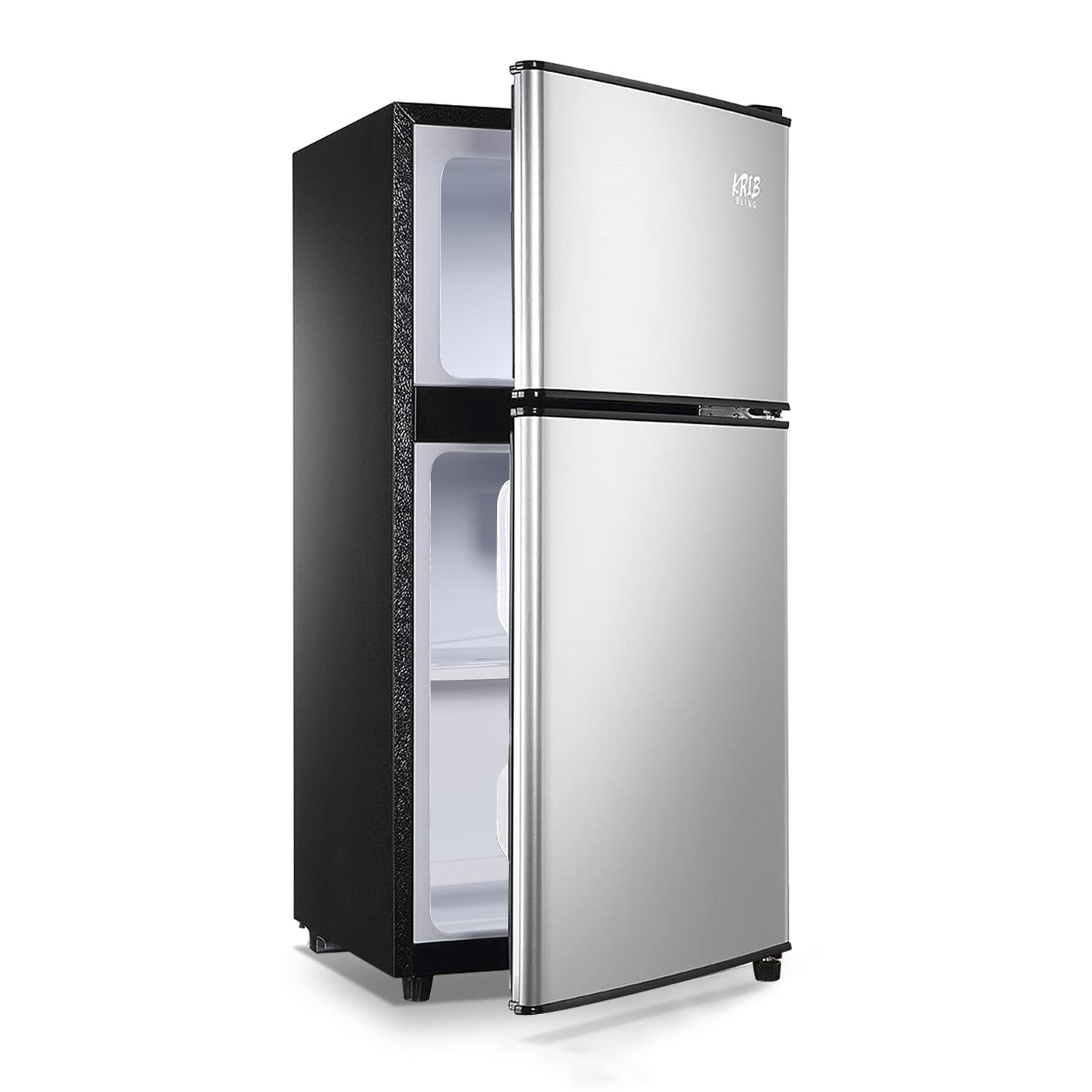 • Two Door Design: This refrigerator has large capacity of 3.5 cu ft (1.2cu-ft freezer and 2.3cu-ft cooler) with dual door design.