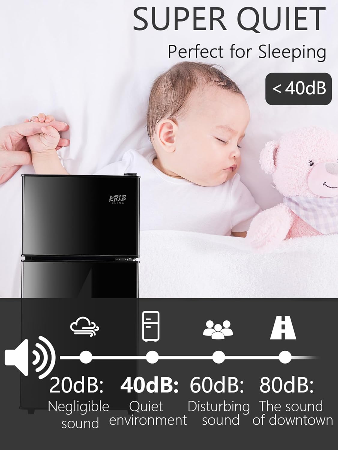 Two Door Design-the fridge has large 2.3 cu ft fresh food capacity for keeping foods organized and 1.2 cu ft freezer capacity for storing frozen foods