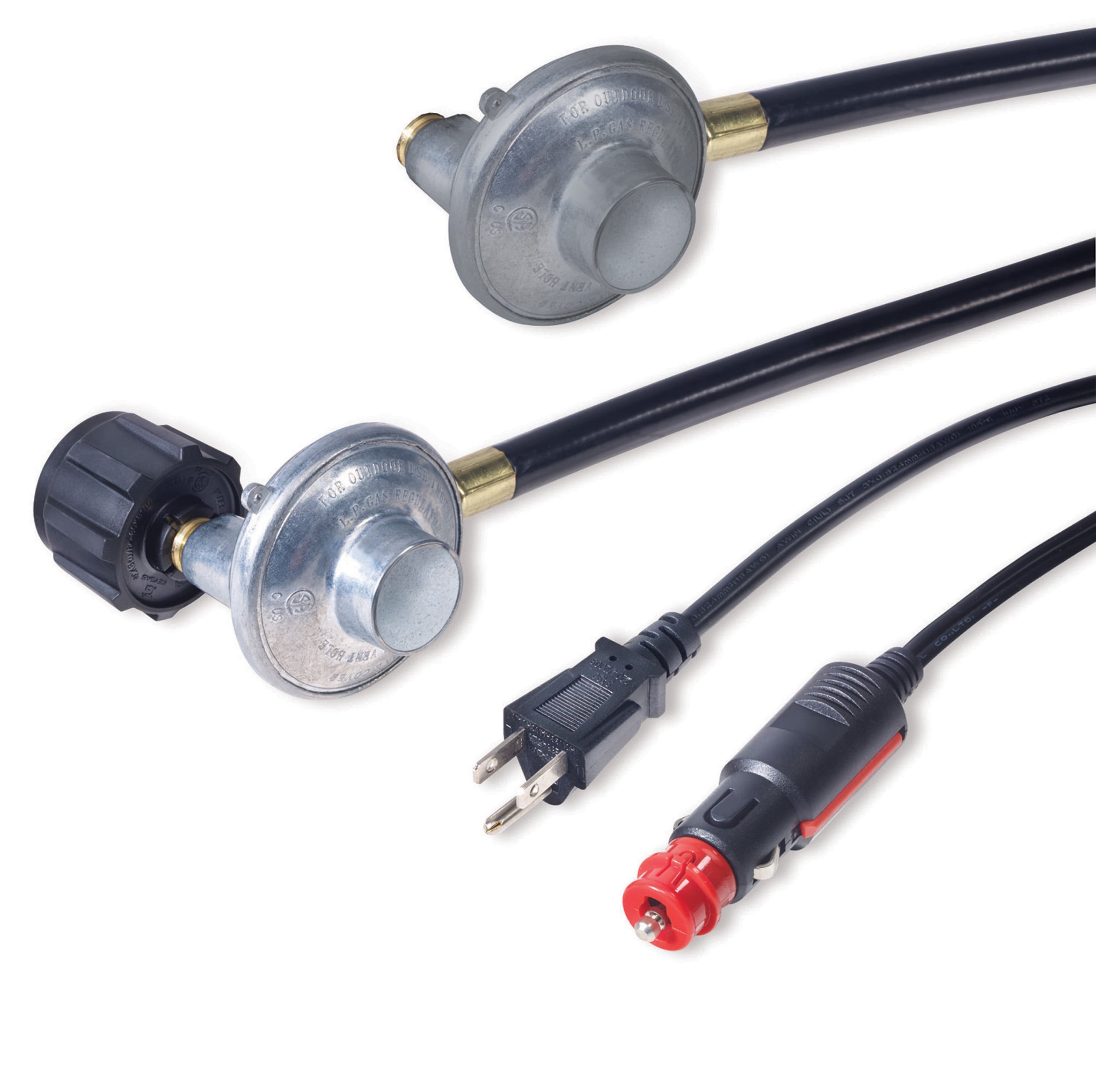 Comes with all connectors – 110V, gas hose, regulators and 12 V adapter