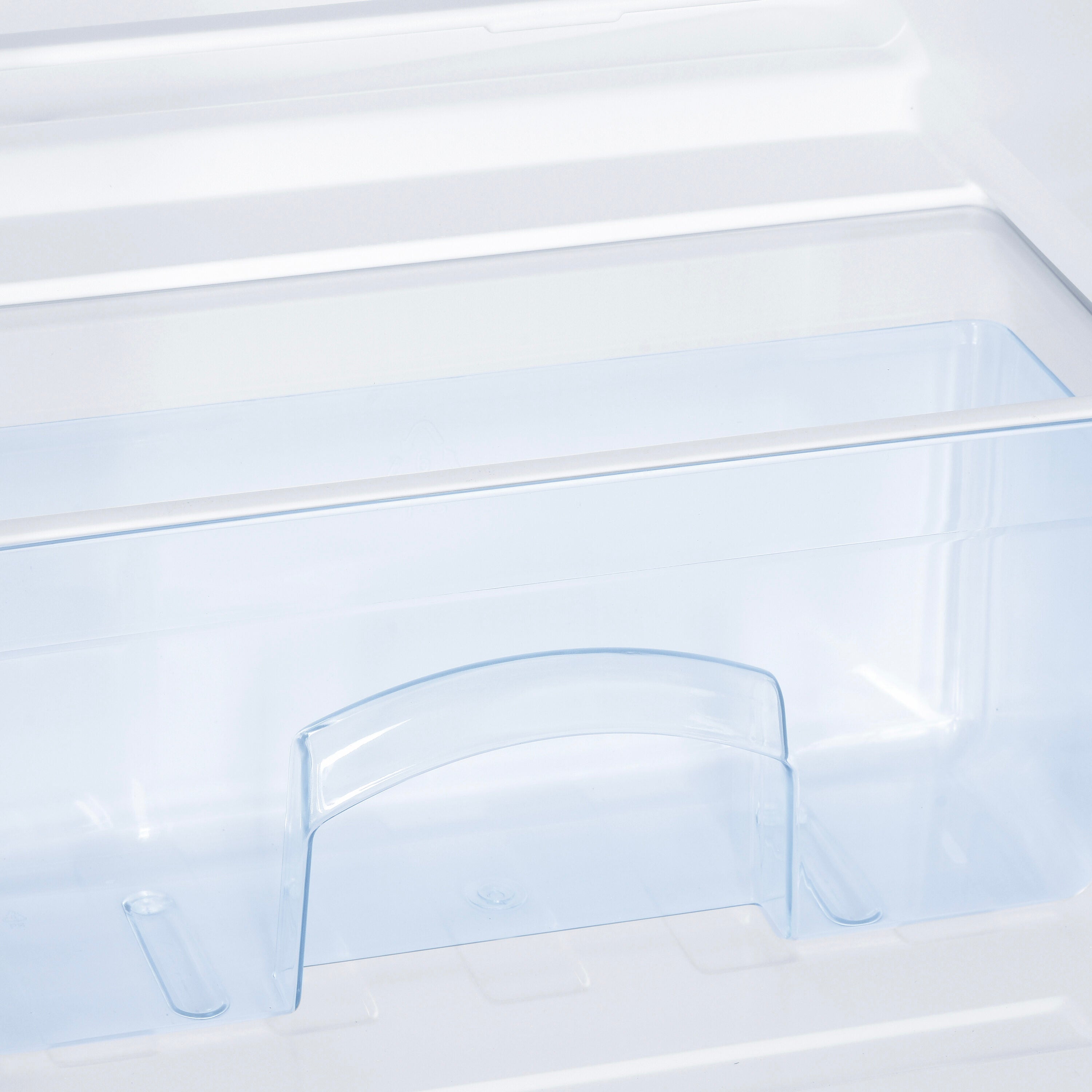 Two adjustable/removable glass shelves, plus crisper offer plenty of storage space