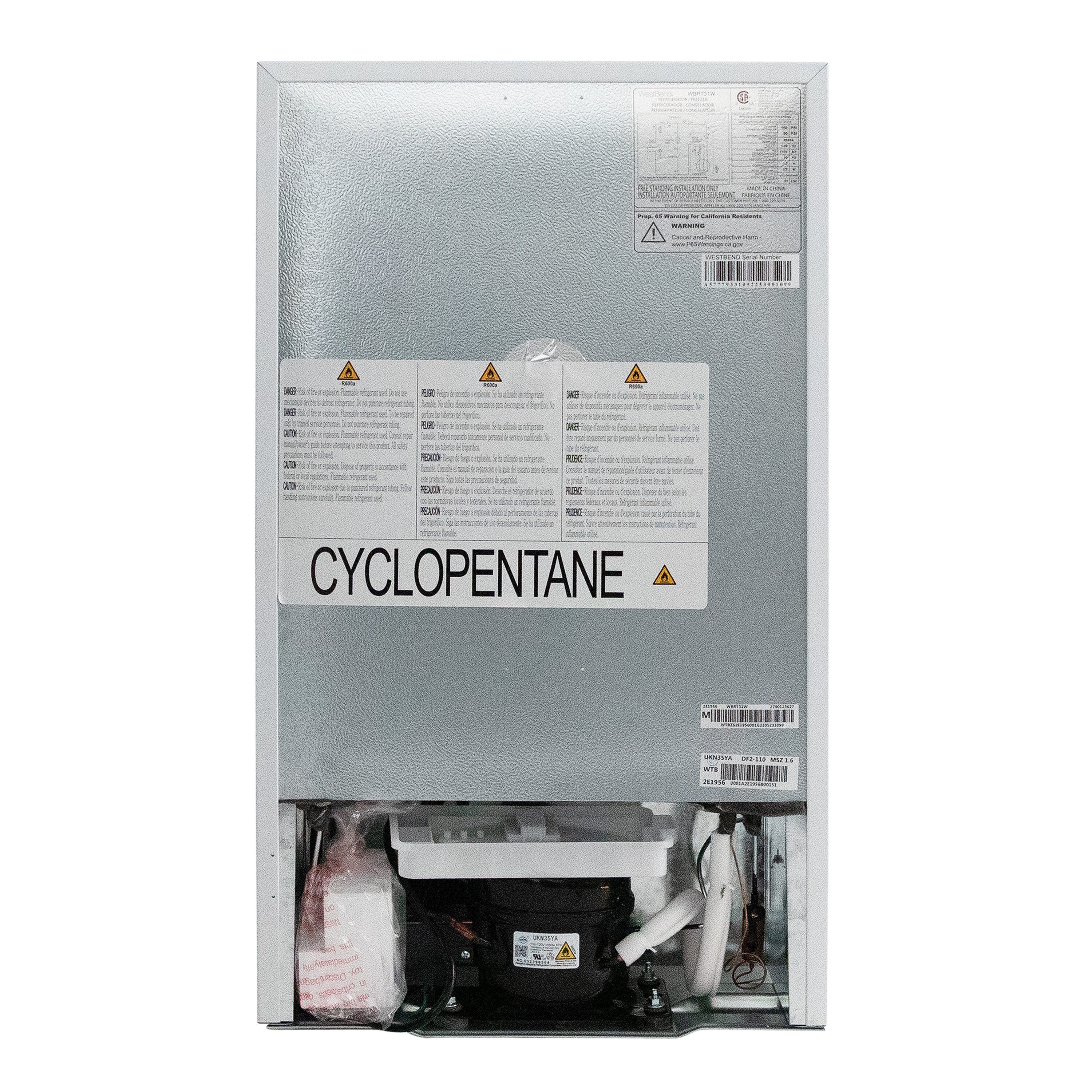 Keep your favorite beverages and snacks close by in the 3.1 cubic foot refrigerator from West Bend. Ideal for anywhere you need a little extra refrigerator and freezer space, the compact size makes it the perfect mini fridge with freezer for the office, dorm, man cave, she shed, bar, bedroom and more. Stock the 2.1 cubic foot mini fridge with bottled water and soda cans or try using it as a dedicated beer cooler or wine fridge. The built in door shelves can accommodate a 2 liter bottle and six 12 ounce cans, as well as other drinks, condiments and more. Arrange the adjustable glass shelves to store salads, fruits, snacks and other food for easy access throughout the day. The 1.0 cubic foot freezer is perfect for stocking up on pizza, ice cream and other frozen foods. This white mini fridge features automatic defrost, so your food and beverages remain fresh and cold. Select the right settings for your items with the full range temperature control. With a recessed door handle, flush back design and reversible door, this compact refrigerator is the perfect choice for any small space.