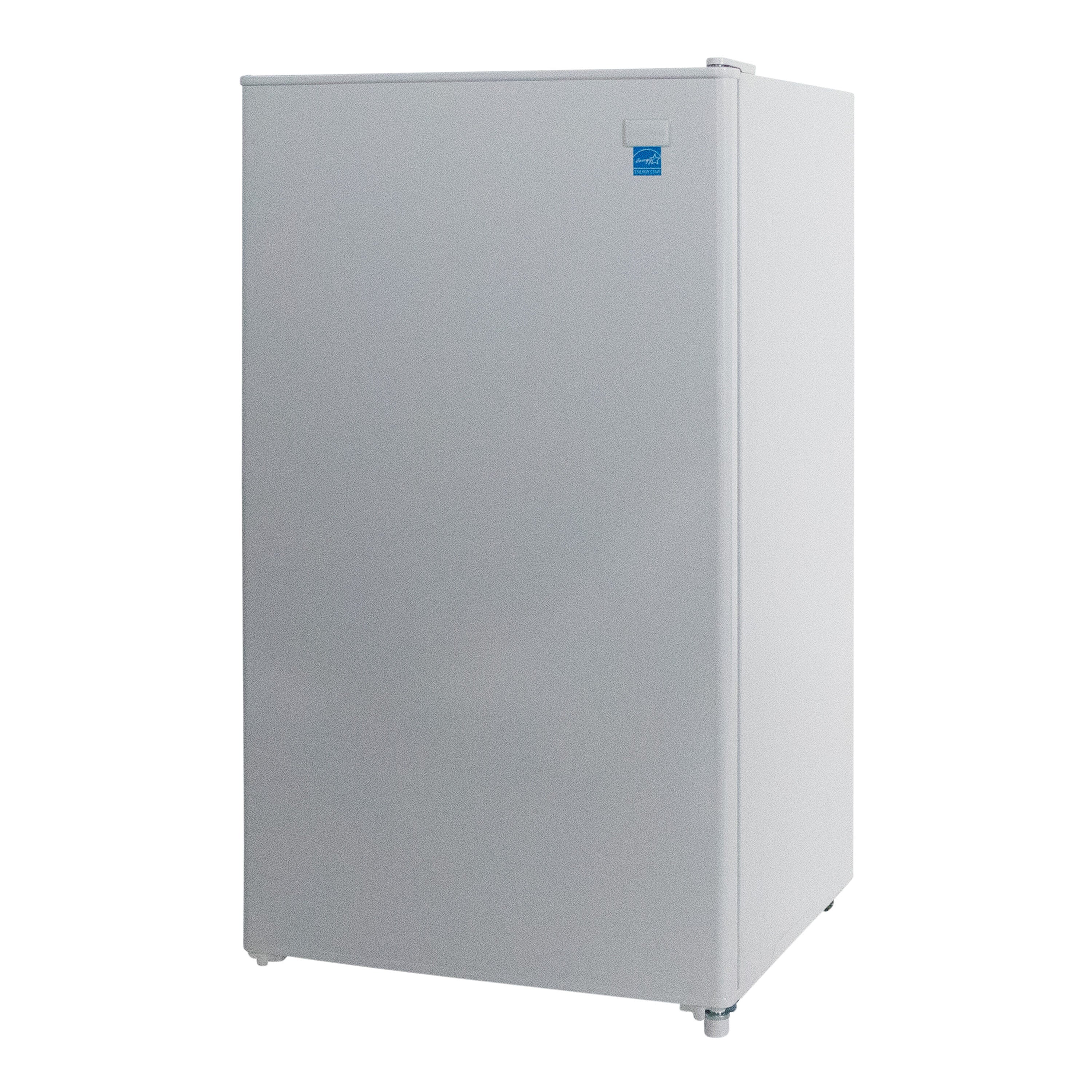 Keep your favorite beverages and snacks close by in the 3.3 cubic foot refrigerator from West Bend. Ideal for anywhere you need a little extra refrigerator space, the compact size makes it the perfect mini fridge for the office, dorm, man cave, she shed, bar, bedroom and more. Stock the mini fridge with bottled water and soda cans or try using it as a dedicated beer cooler or wine fridge. Adjustable door bins can accommodate 2 liter bottles as well as other drinks, condiments and more. Arrange the adjustable glass shelves to store salads, fruits, snacks and other food for easy access throughout the day. This white mini fridge features manual defrost, so your food and beverages remain fresh and cold. Select the right settings for your items with the full range temperature control. With a recessed door handle, flush back design and reversible door, this compact refrigerator is the perfect choice for any small space.