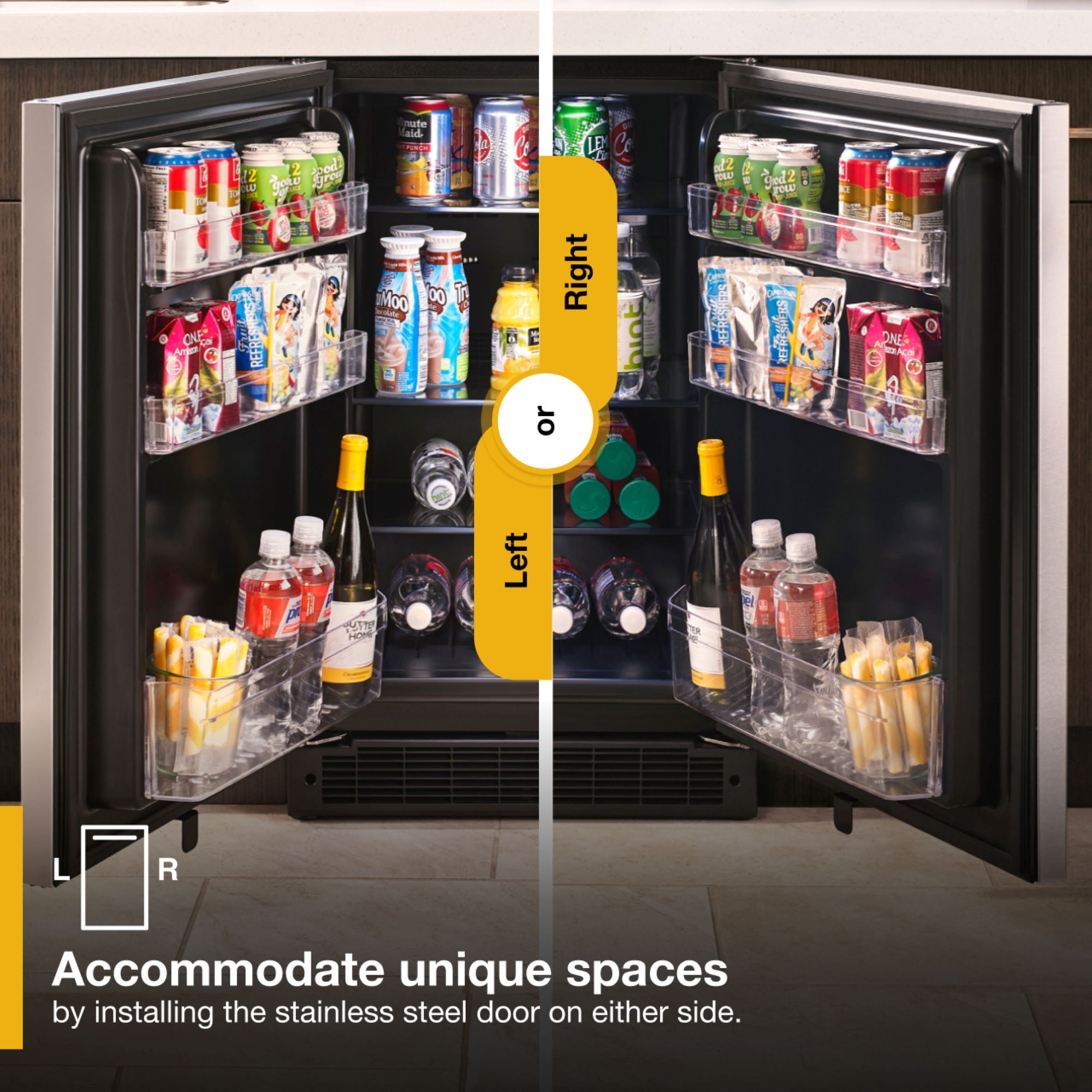 • Reversible stainless steel door - install the stainless steel door on either side to accommodate unique spaces