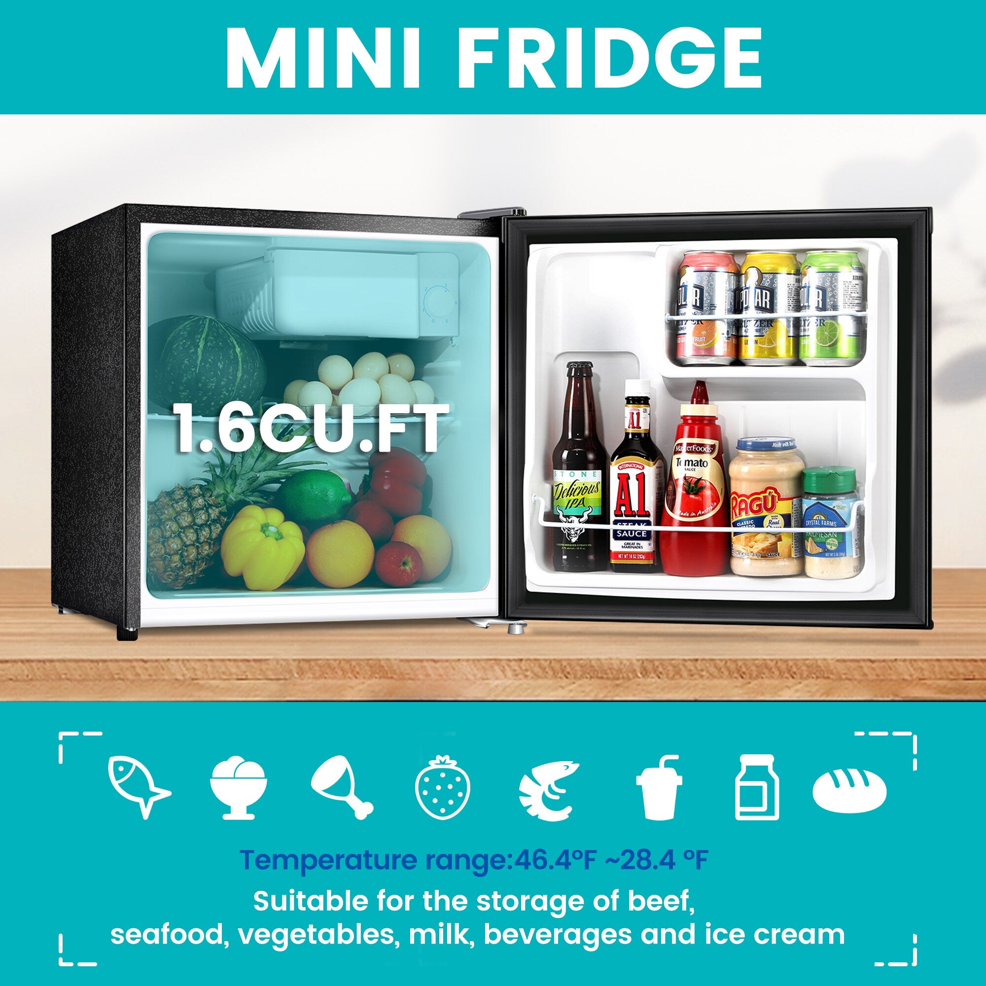 Mini size: Without taking up too much space, it is perfect for desktop, under counter space, college dorm rooms, offices, garages, home bars, small apartments, and RV campers.