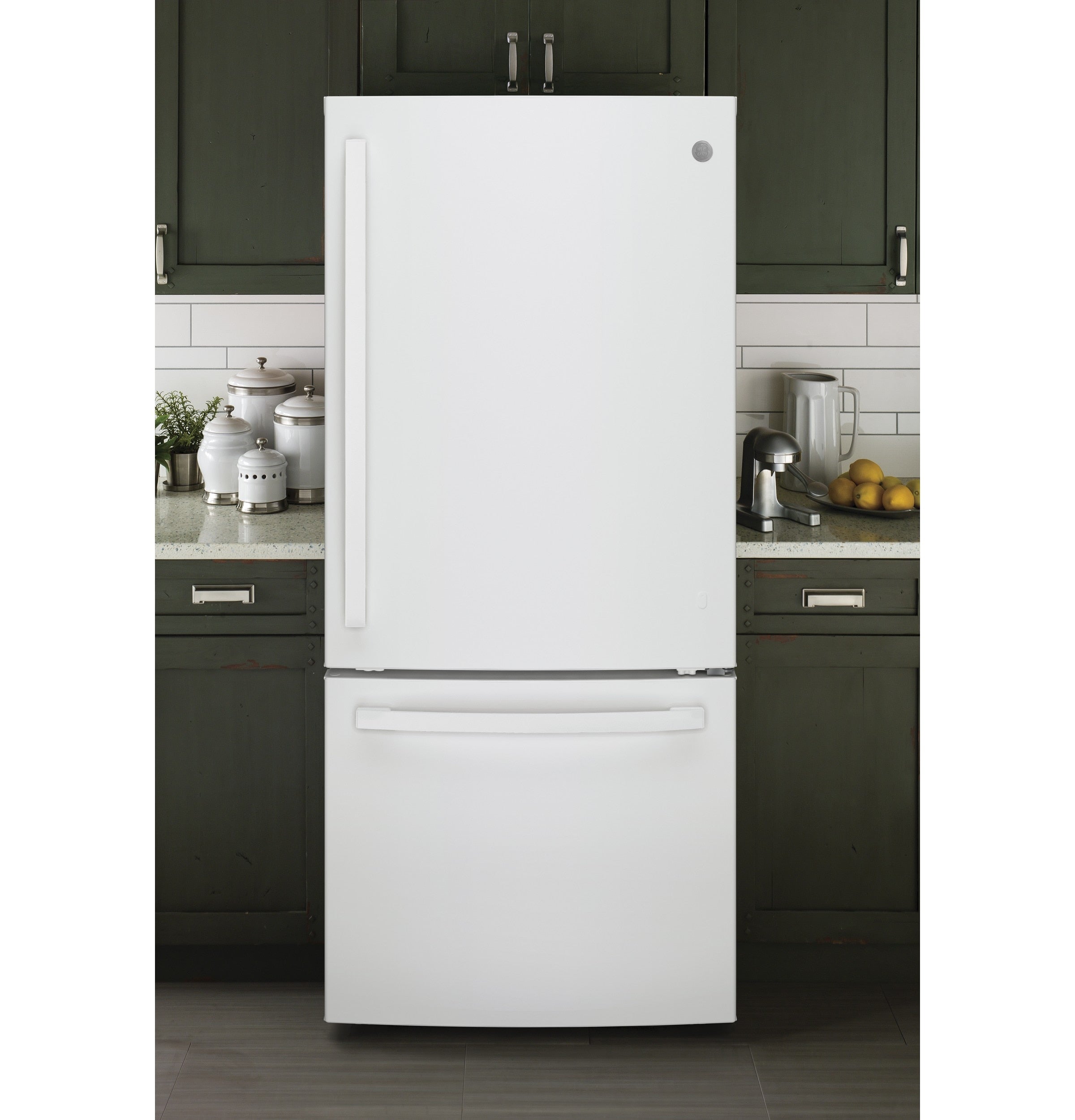 GE 20.9-cu ft Standard-Depth Bottom-Freezer Refrigerator with Ice Maker ( White ) ENERGY STAR Certified
