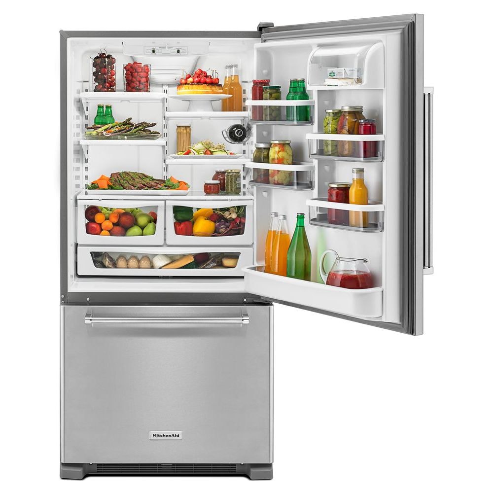 • KitchenAid 22.07-cu ft Standard-Depth Bottom-Freezer Refrigerator Ice Maker Optional (sold separately) ( Stainless steel ) ENERGY STAR Certified