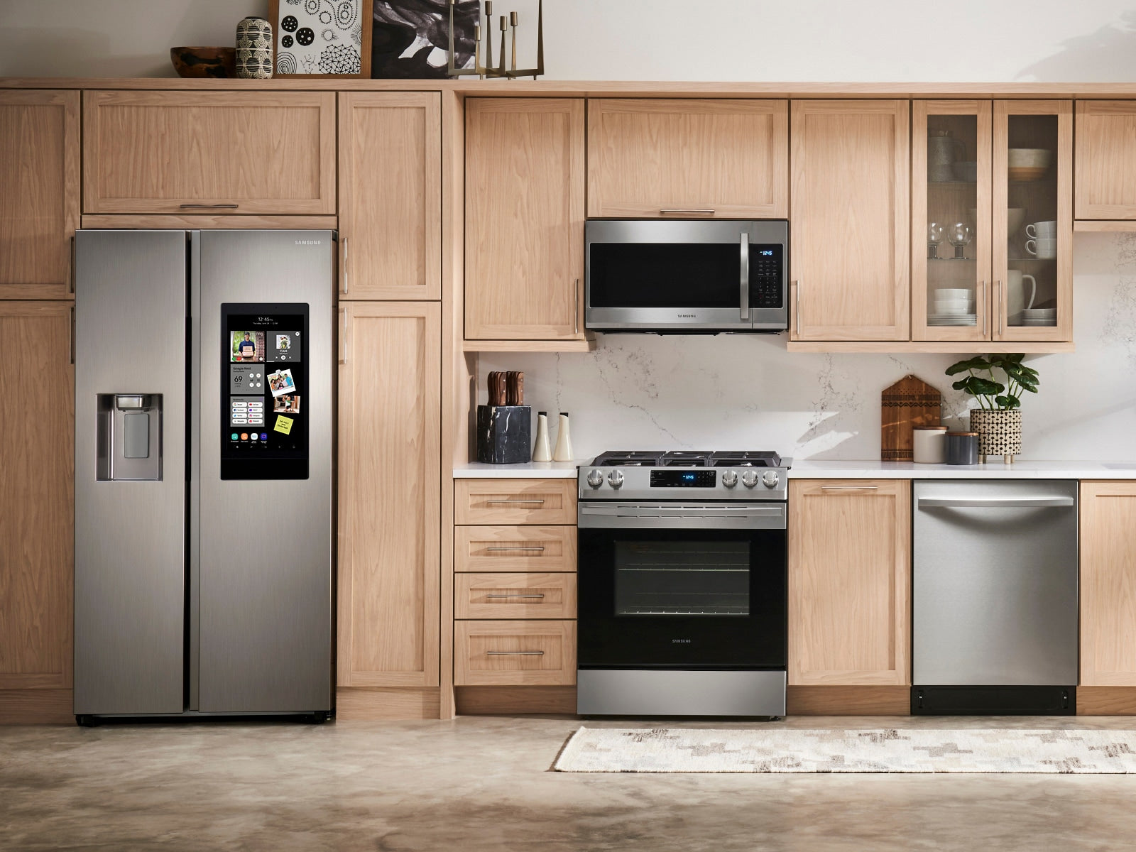 (1), (4)Wi-Fi connection and Samsung account required (2)Wi-Fi connection and Samsung account required - Compatible with select Ring, Arlo, Amazon, and Nest products, as well as select appliances