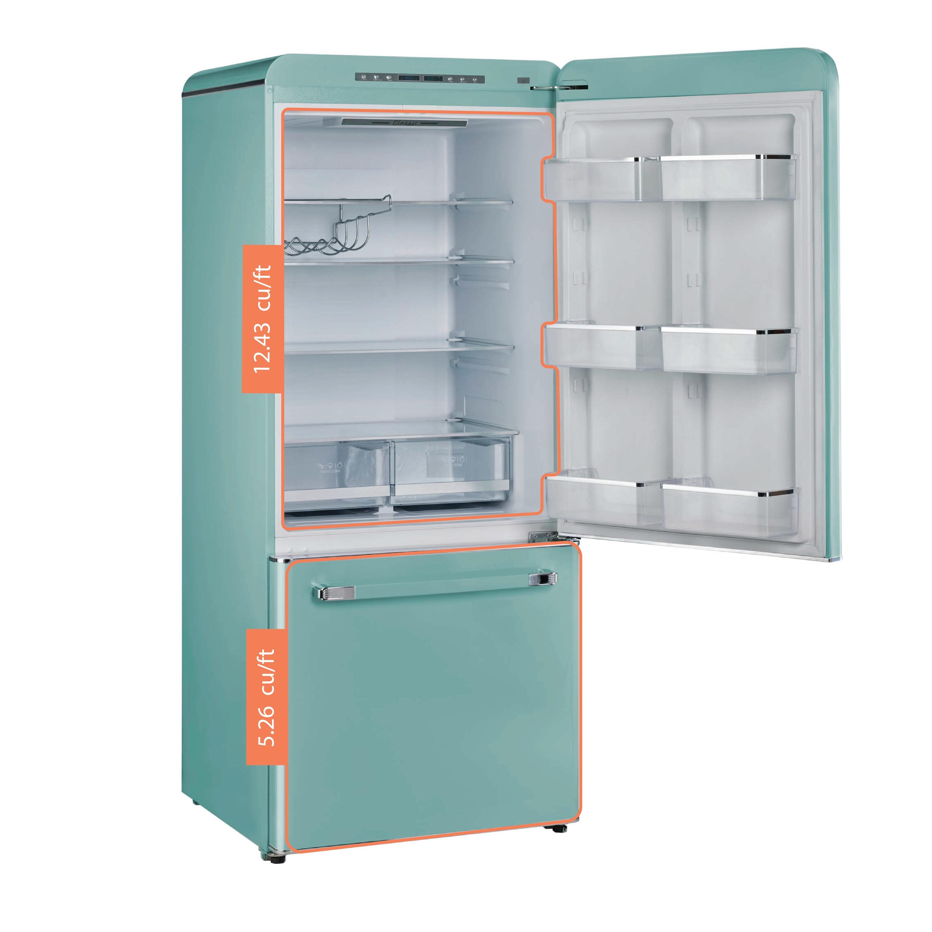 • UNIQUE Classic Retro 17.7-cu ft Counter-Depth Bottom-Freezer Refrigerator with Ice Maker ( Ocean Mist Turquoise ) ENERGY STAR Certified