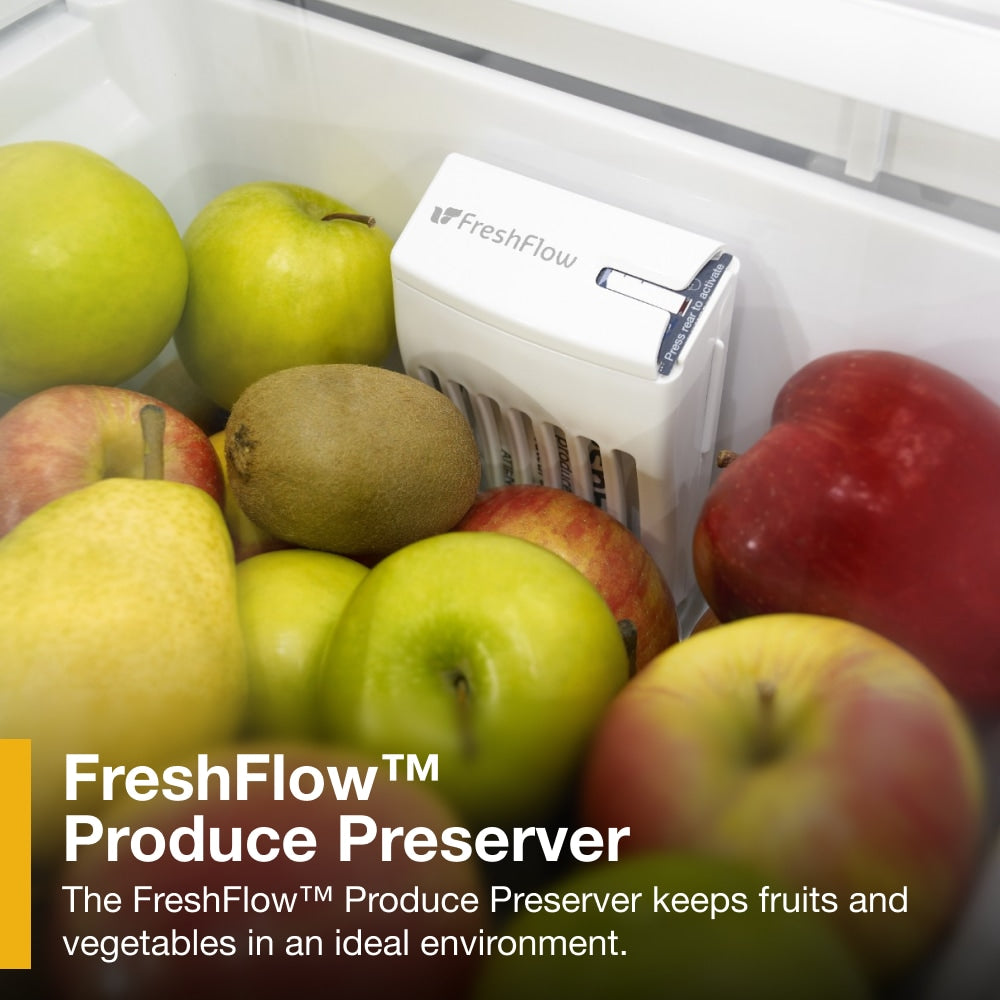 • Spillproof Glass Shelves help contain spills and prevent liquids from leaking below