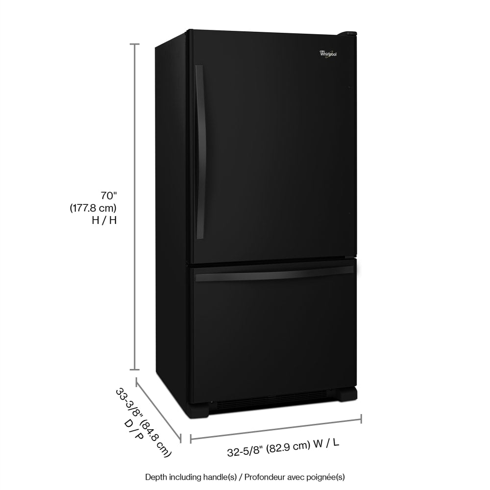 • Whirlpool 22.07-cu ft Standard-Depth Bottom-Freezer Refrigerator with Ice Maker ( Black ) ENERGY STAR Certified