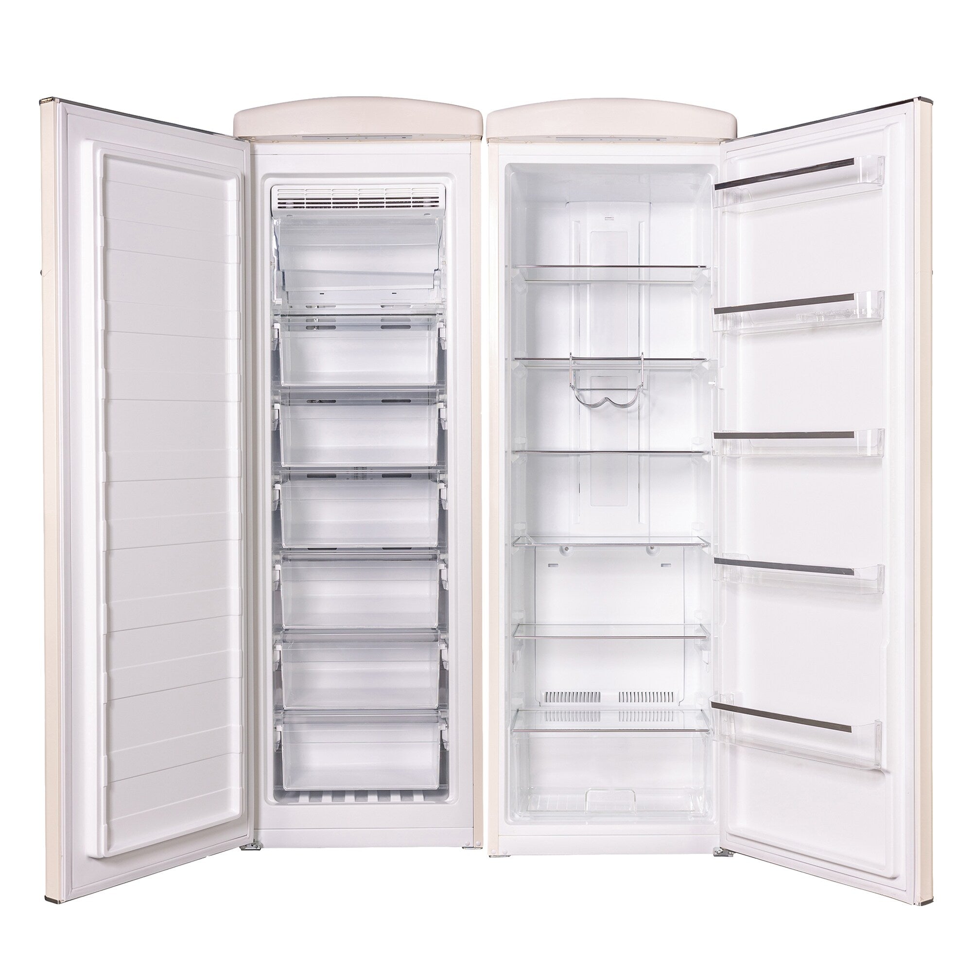 • Achieve the perfect level of "cool" — both in style and temperature — with the Retro French Door Refrigerator Freezer Bundle -Refrigerator RR1100 and Freezer FF830