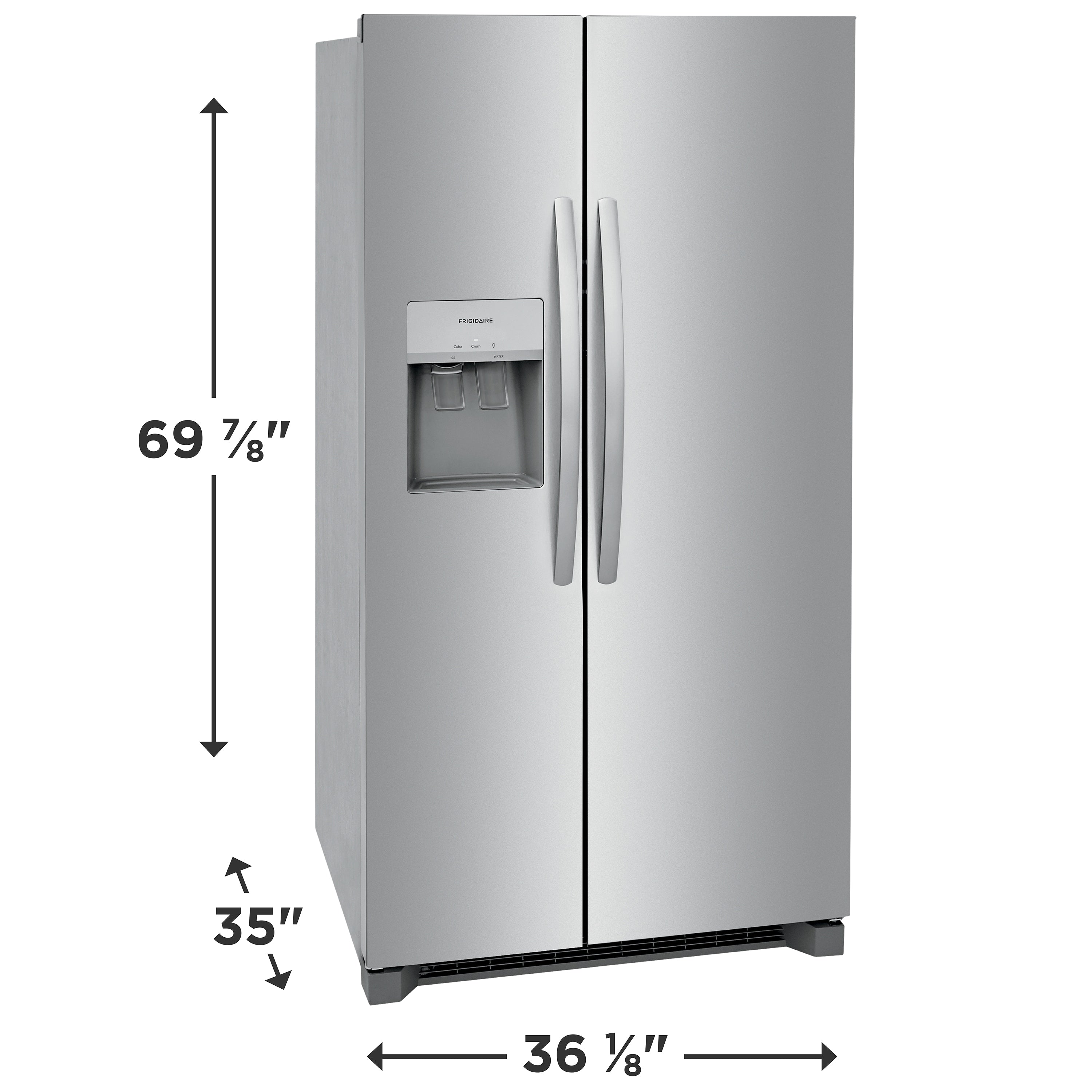This Frigidaire 36-in side-by-side refrigerator offers our EvenTemp™ Cooling System which reacts quickly to temperature fluctuations and constantly circulates cold air throughout the fresh food and freezer compartments, ensuring a consistent cool from top to bottom. Keep fruits and vegetables fresh in our crispers that offer a seal to block out dry air. Enjoy the capacity to fit all of your family's favorites and keep everything tidy with our flexible organization system that includes adjustable gallon door bins, removable glass shelves and two produce drawers. Awarded the Best Overall Side by Side Refrigerator of 2023 by Reviewed.com (USA Today).
