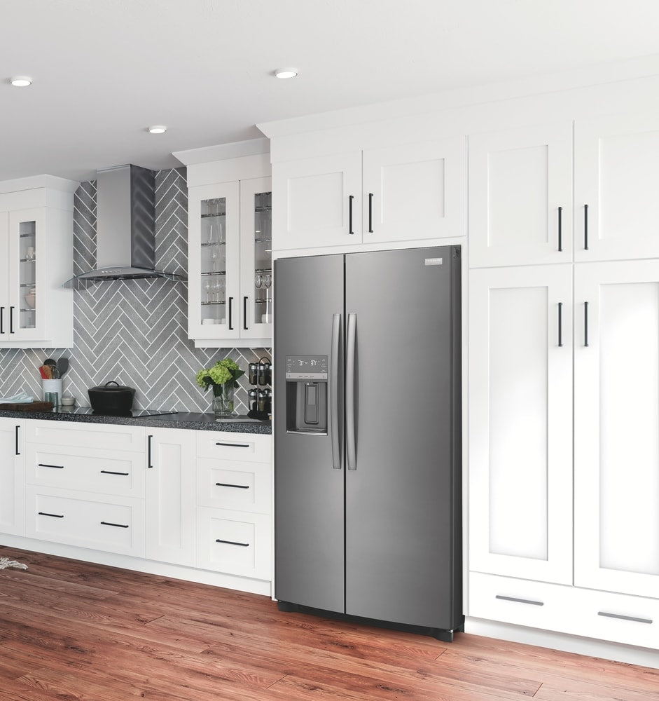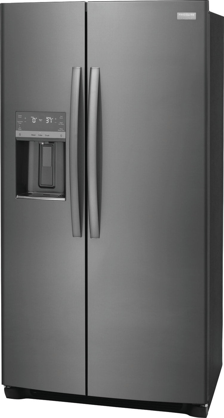 • Frigidaire Gallery 22.3-cu ft Counter-Depth Side-by-Side Refrigerator with Ice Maker ,Water and Ice Dispenser ( Fingerprint Resistant Black Stainless Steel ) ENERGY STAR Certified