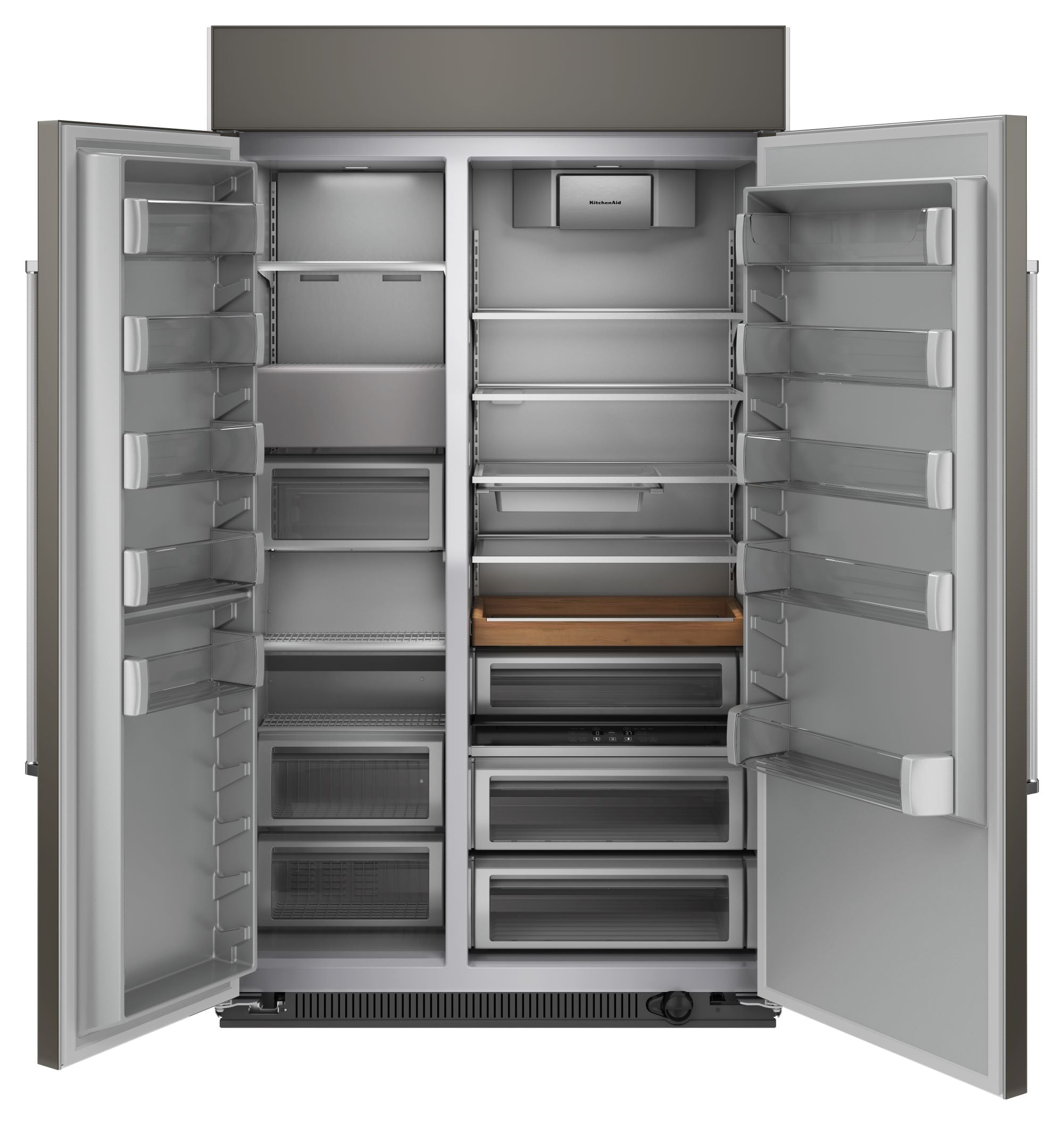 This premium 48” built-in refrigerator features PrintShield™ Finish to resist fingerprints outside, and innovative storage features inside. Like the Under-Shelf Prep Zone with included bakeware - ideal for storing food prep, chilling desserts and more. The Wood-Look Pull Out Tray keeps ingredients beautifully organized and is moisture- and stain-resistant. Plus, maintain optimal temperatures of your ingredients with the ExtendFresh™ Plus Temperature Management System.