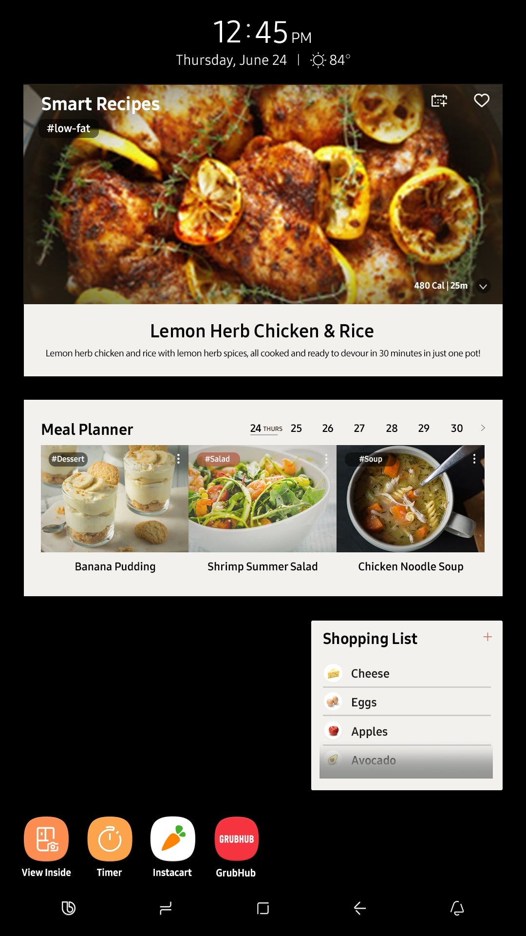 • Cooking: See what’s inside your fridge with your phone, or just swipe or tap the screen - SmartThings Cooking provides instant access to meal ideas and can remotely preheat your oven