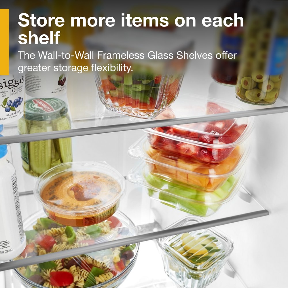 • Store more items on each shelf with Wall-to-Wall Frameless Glass Shelves