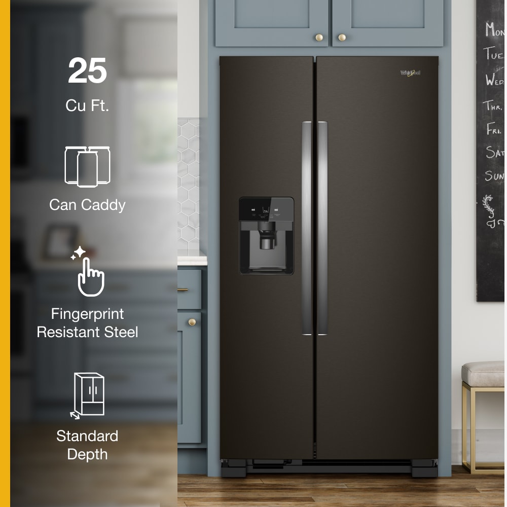• Whirlpool 24.5-cu ft Side-by-Side Refrigerator with Ice Maker ,Water and Ice Dispenser ( Fingerprint Resistant Black Stainless )