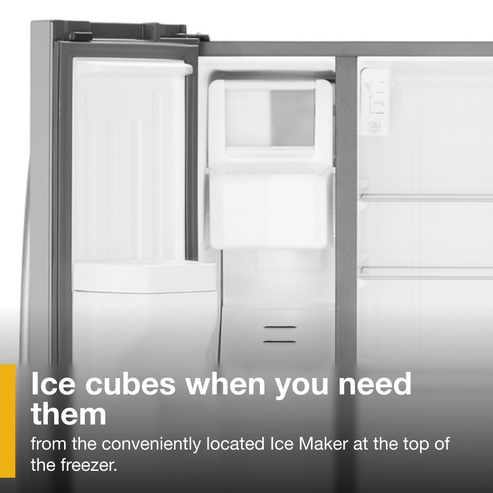 Purposeful storage in a refrigerator is a game changer. This 24.6 cu ft side-by-side refrigerator from Whirlpool® has many thoughtful features that optimize storage so you can fit and find your family’s most loved foods and beverages. Good to know: Whirlpool® refrigerators have the lowest repair rate among side by side refrigerators. (*Claim compares Whirlpool branded refrigerators to GE, Frigidaire, Samsung and LG.Based on service required data, Q2 2022-Q2 2023, Traqline - The Stevenson Company, 2023.) This model is only available at Lowe’s. Only available at Lowe’s.