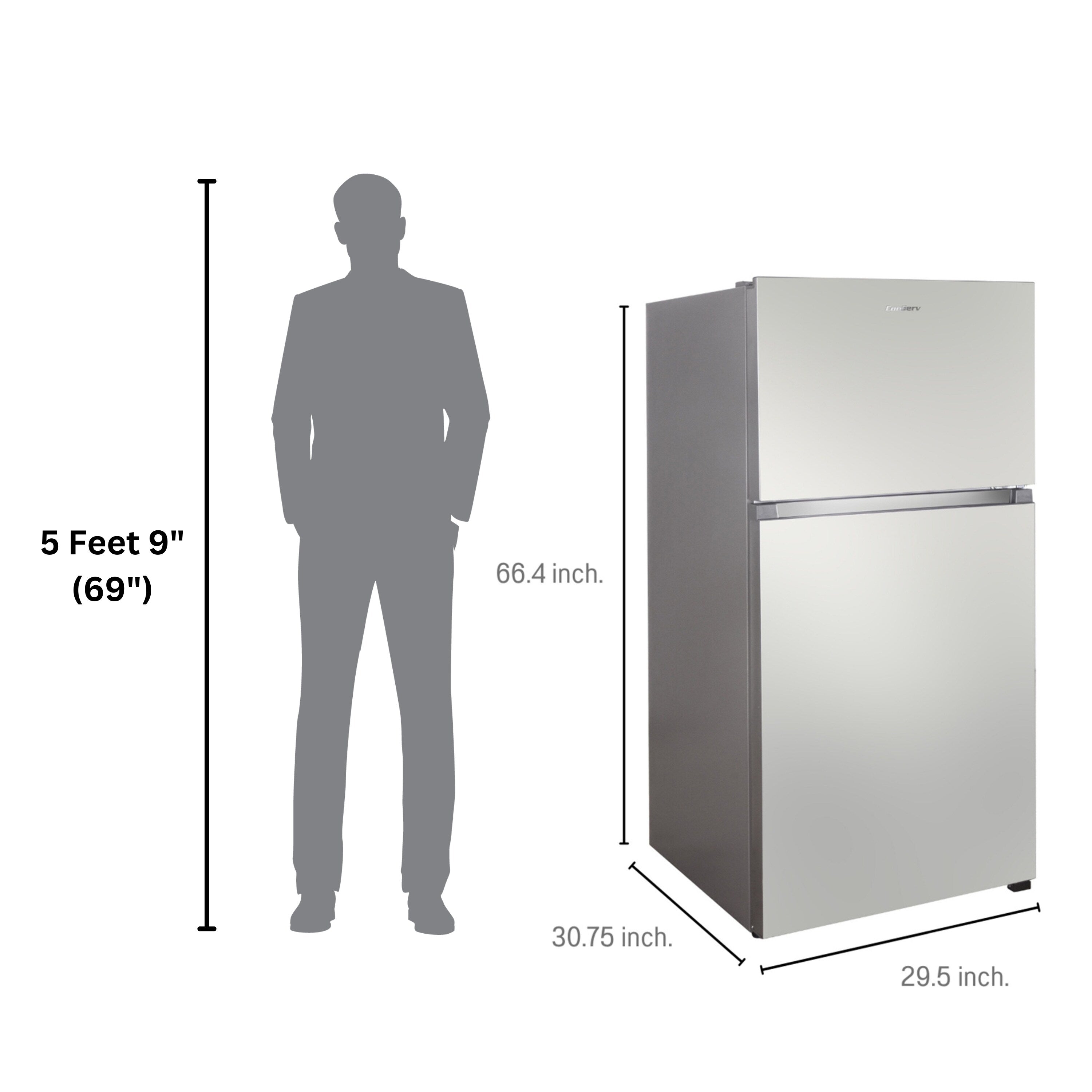 Designed with premium features and top-tier materials, the ConServ TMRI 180 S Top Mount Refrigerator with Ice Maker is the ultimate way to keep food and beverage items at the optimum temperature. This unit provides 18.16 cubic square feet of space, and measures 66.4 x 29.5 x 30.75 (HxWxD in inches). Delight in the convenience of having a pre-installed ice maker and tailored storage for items of all sizes, including gallon storage. The TMRI 180 S comes equipped with two adjustable glass refrigerator shelves, a butter box, four door shelves, and one freezer shelf. Illuminating all stored items is a bright interior light, making it easy to see the contents of the fridge — day or night. Another highly desirable aspect of this model is its energy efficiency. Rated by Energy Star, the TMRI 180 S is powered by an efficient compressor that expertly conserves electricity. Users also appreciate this unit's other exceptional features, including a fingerprint resistant exterior, adjustable feet, freestanding design, frost free interior, and reversible door.