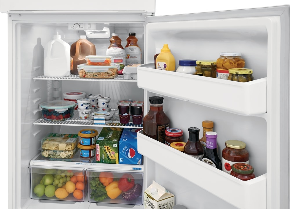 This Frigidaire 18 cu. Ft. top freezer refrigerator offers a timeless style with the latest cooling technology. Our EvenTemp™ Cooling System prevents unwanted freezing by optimizing airflow and ensures a consistent temperature throughout your refrigerator. The spacious interior storage enables you to easily organize your family's favorites with two wire shelves, spacious door bins, and a full-width glass freezer shelf.