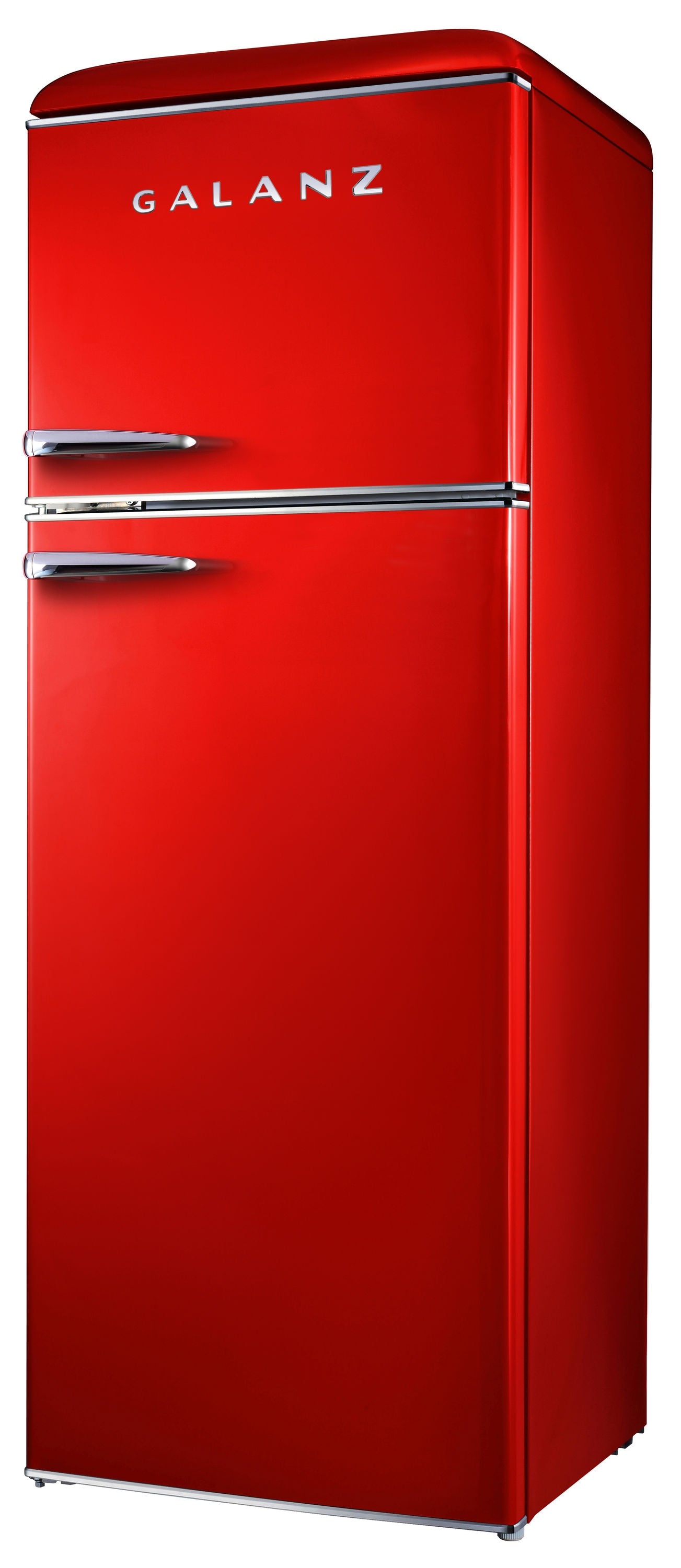 Galanz 12.0 Cu Ft retro style frost free top freezer refrigerator can store and keep cool snacks, beverages and more. Best of all, this refrigerator-freezer has the look and feel of the fabulous old days, but has the appeal of a modern appliance. Featuring an adjustable thermostat, separate freezer compartment, bright interior lighting and spacious, clear fruit and vegetable crisper, the unit also has removable shelves and door shelves. It is a fun and stylish addition to any kitchen, rec room or home office.