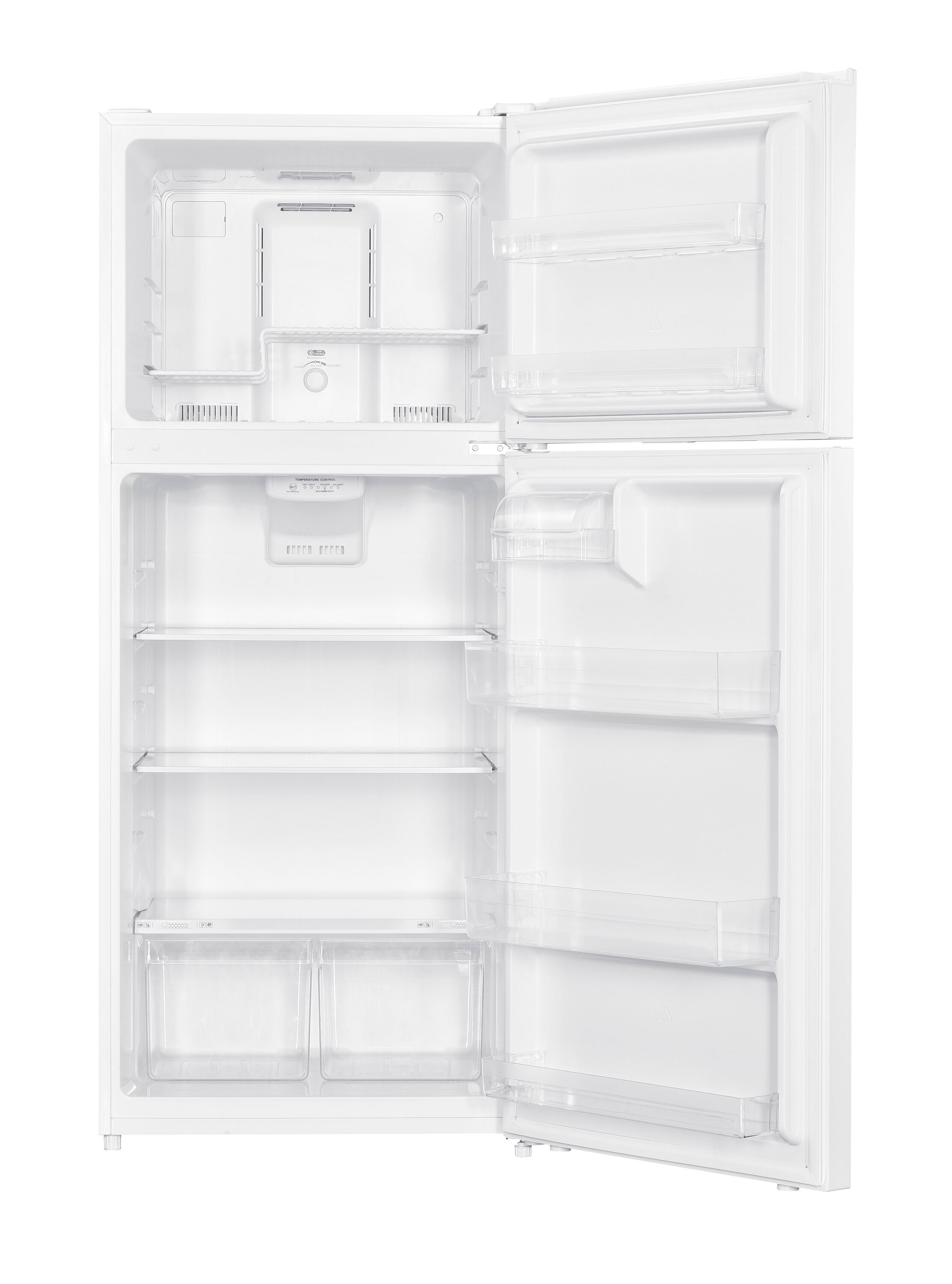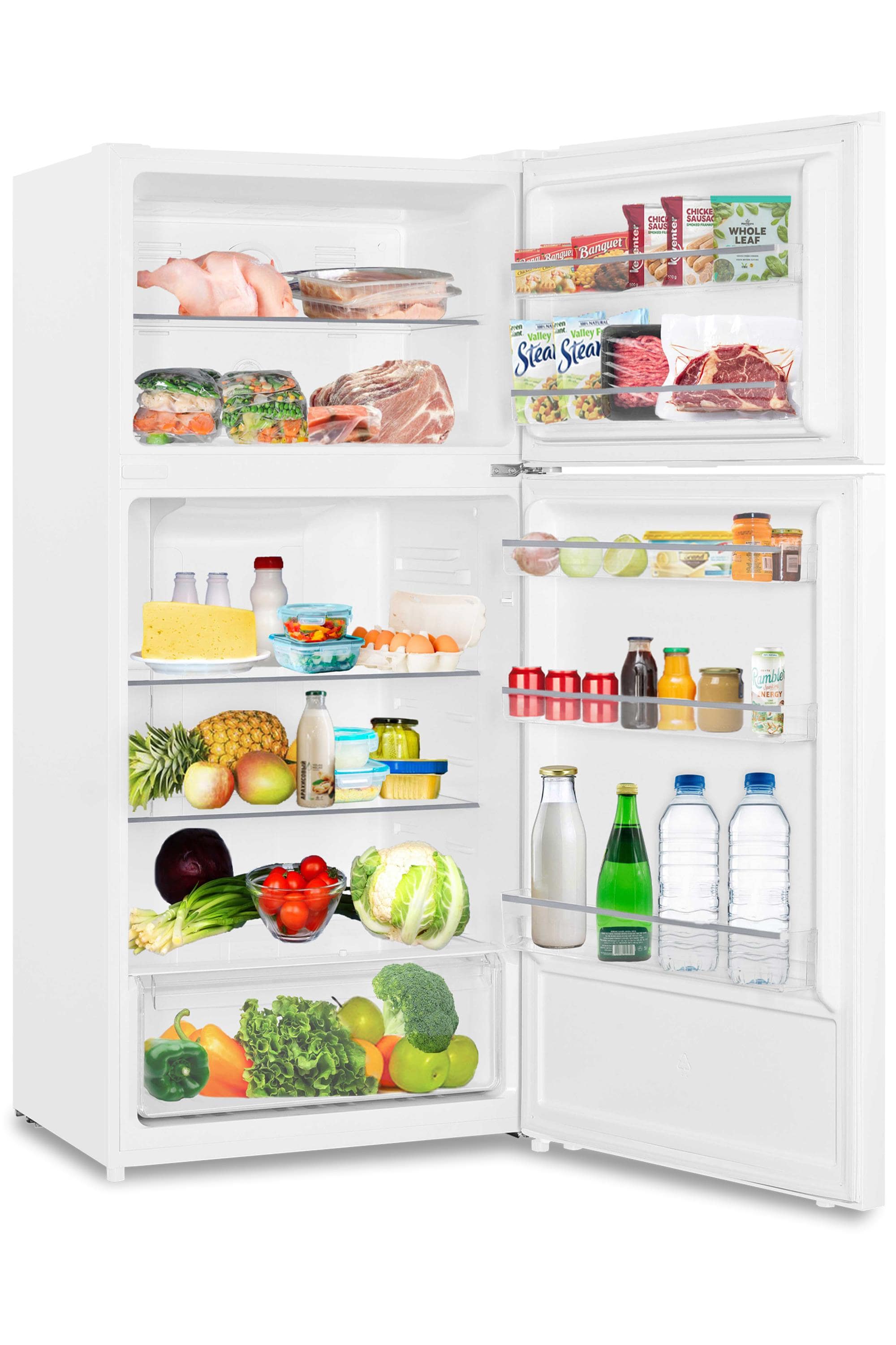 2 Adjustable Shelves, 1 Fixed and Gallon Door Rack, Plus 3 Bins Full Width in the In-door Storage